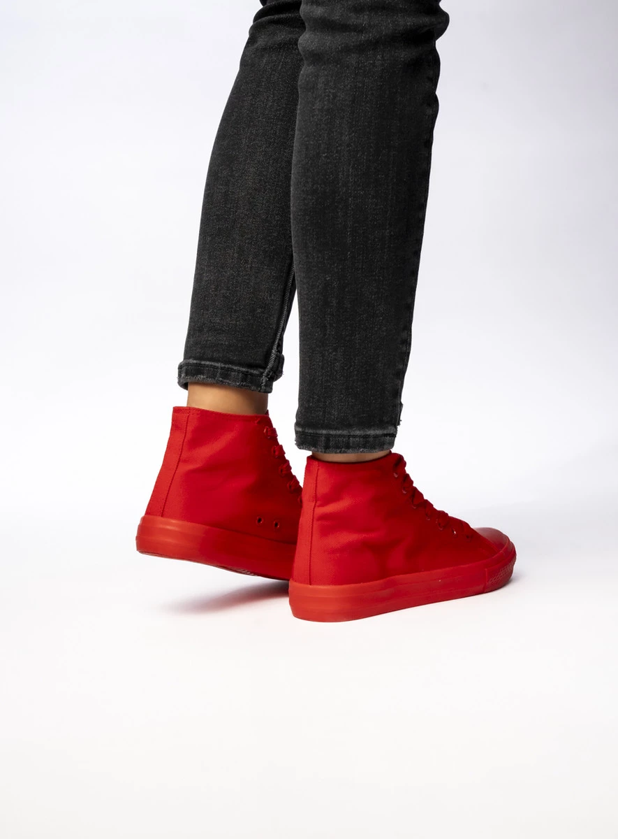 DENVER RED to klasyczne trampki o nowoczesnym designie, stworzone dla kobiet ceniących wygodę i wyrazisty styl. Ich intensywnie czerwony kolor dodaje charakteru każdej stylizacji, a solidna konstrukcja sprawia, że są idealnym wyborem na co dzień. Dzięki wysokiej cholewce i sznurowanemu zapięciu zapewniają stabilizację i komfort noszenia, a elastyczna podeszwa gwarantuje wygodę nawet przy długotrwałym użytkowaniu.