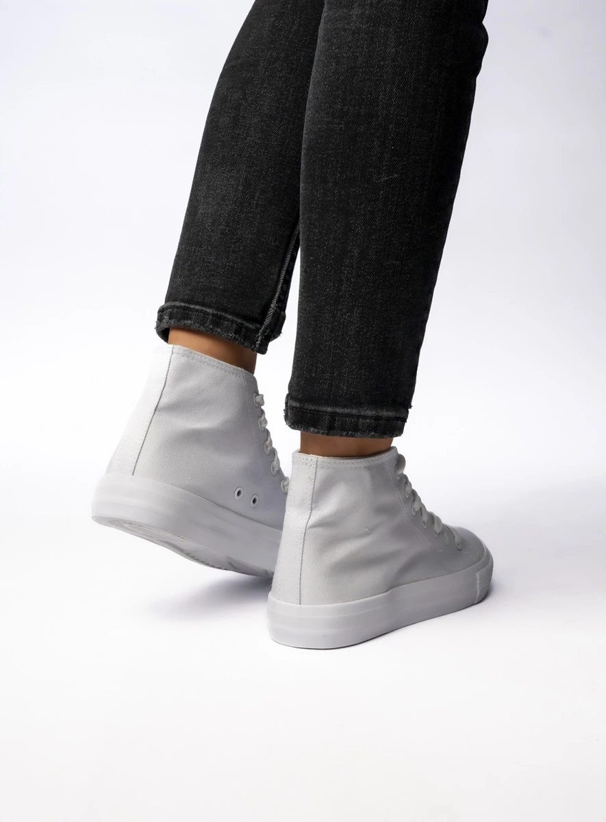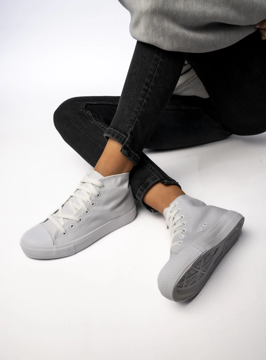 SOLISY WHITE to klasyczne białe trampki z wysoką cholewką, które łączą wygodę i styl w jednym! Ich uniwersalny design sprawia, że pasują zarówno do sportowych, jak i casualowych stylizacji. Dzięki lekkiej i przewiewnej tkaninie zapewniają komfort noszenia przez cały dzień. Idealne na każdą okazję, kiedy liczy się wygoda i ponadczasowa elegancja.