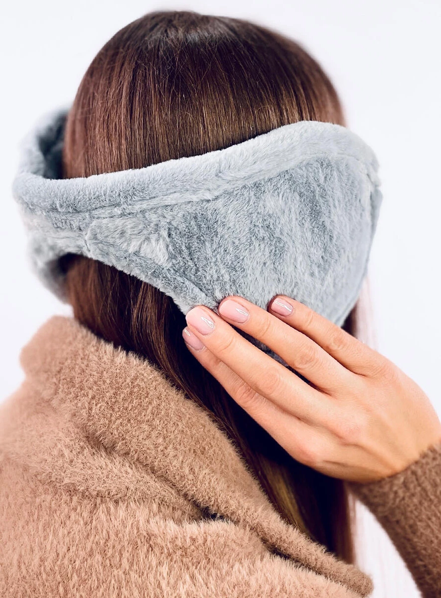 Futrzane nauszniki damskie za głowę GRANDO JASNE SZARE