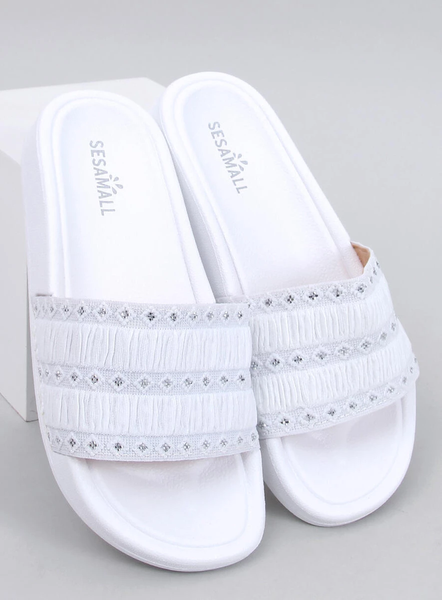 Klapki damskie na gumowej podeszwie. Model wyróżnia szeroki pasek z subtelnymi zdobieniami, który również świetnie trzyma stopę. Nie dość, że świetnie wyglądają to jeszcze są niesamowicie wygodne! Jesteśmy przekonane, że te klapki spełnią Twoje oczekiwania : ) Materiał zewnętrzny – tkanina + guma.