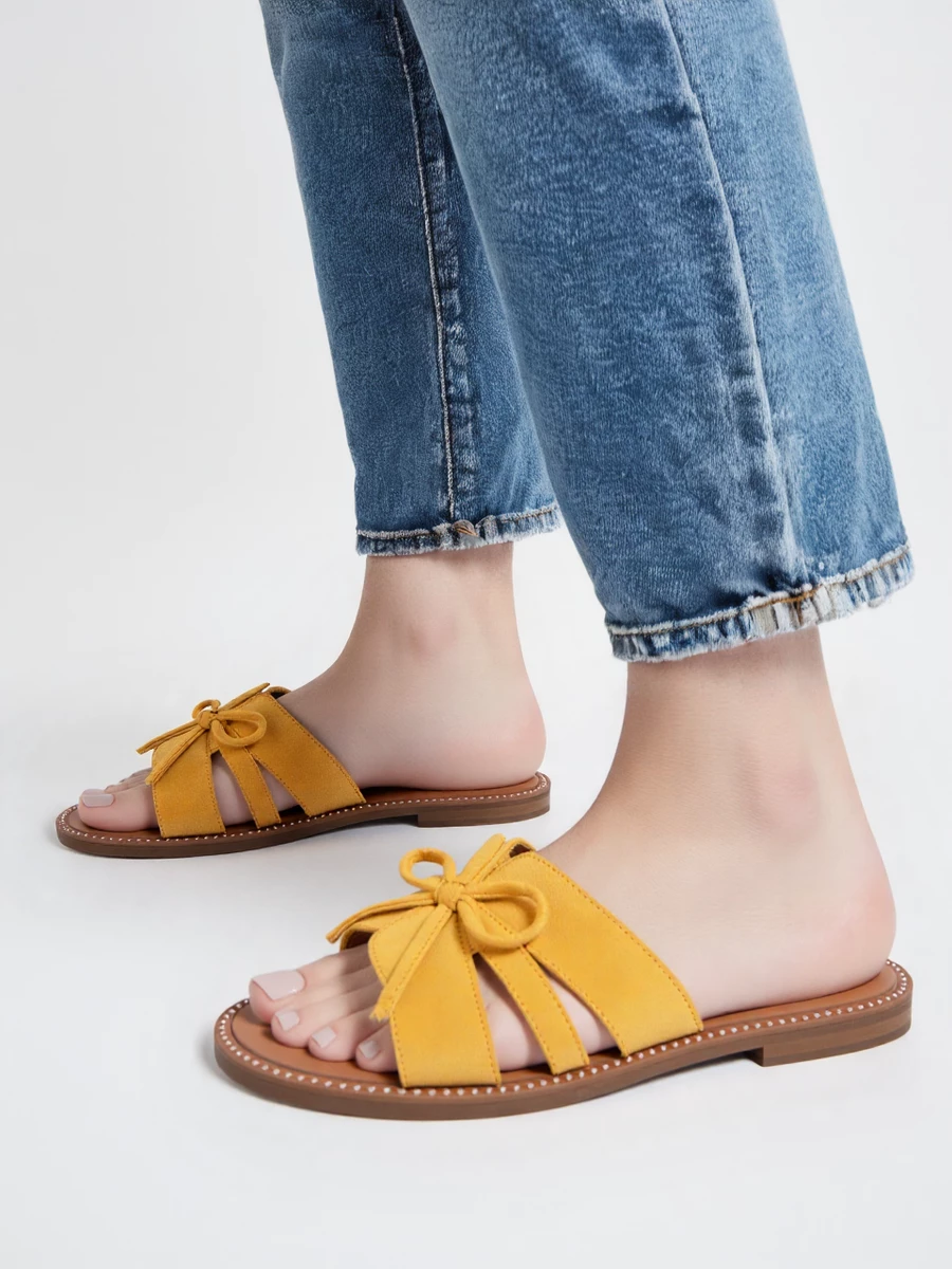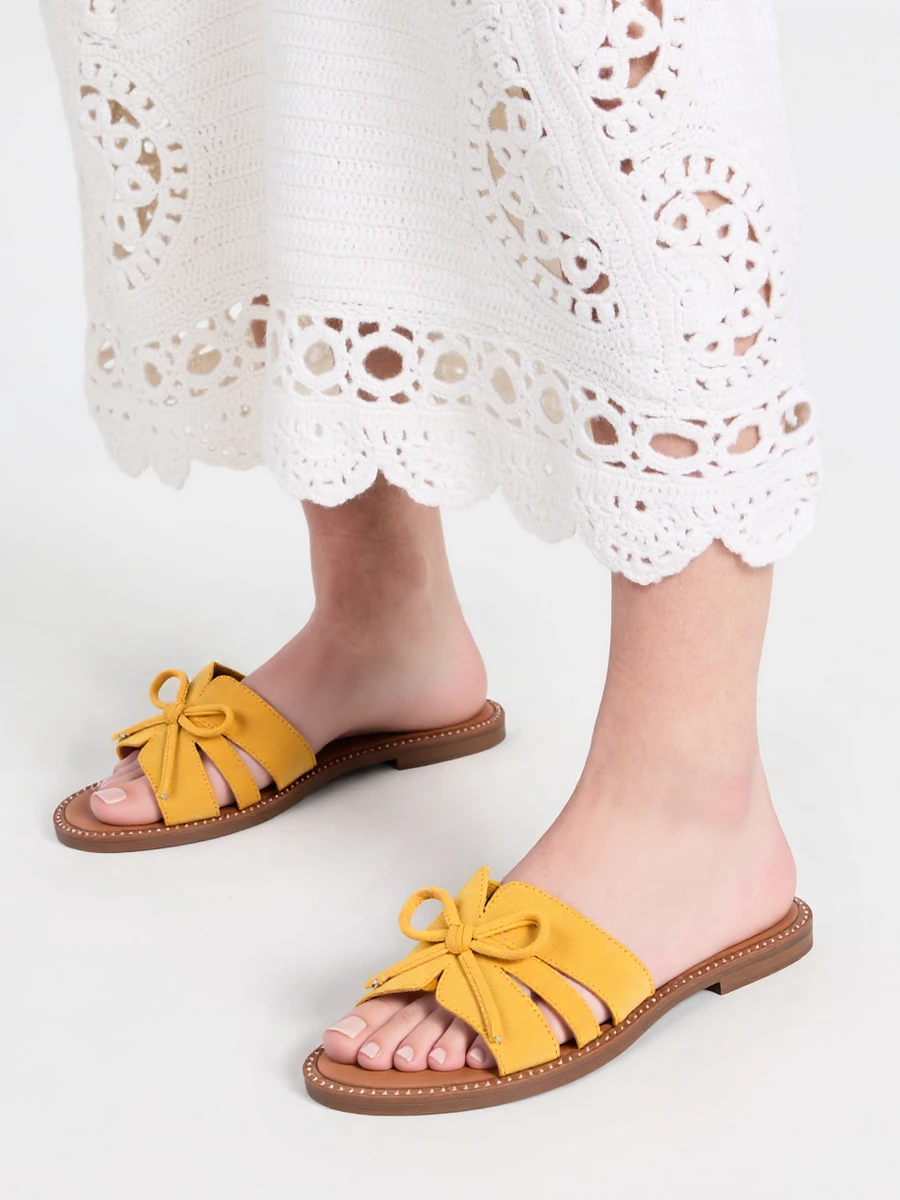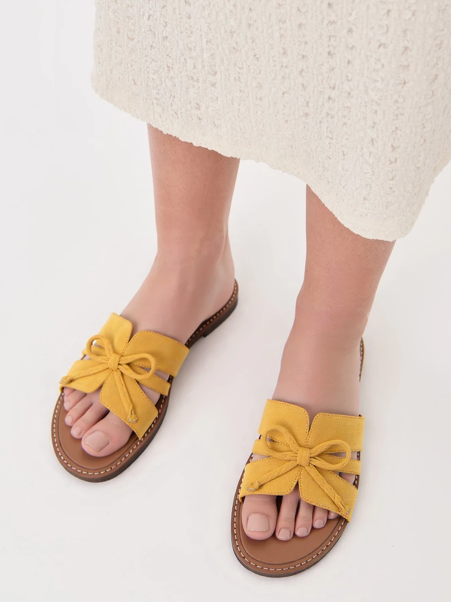 Klapki damskie z kokardą, styl casual, kolor Yellow