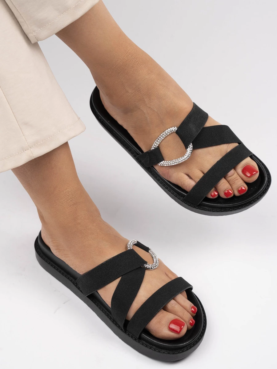 Klapki damskie z ozdobną klamrą i szerokimi paskami Black