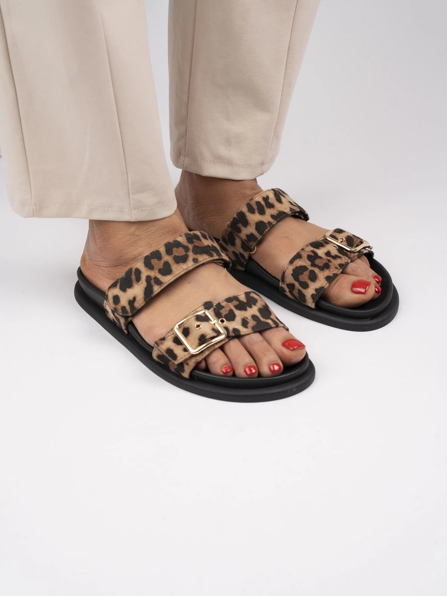 Klapki damskie z regulowaną klamrą w kolorze Leopard