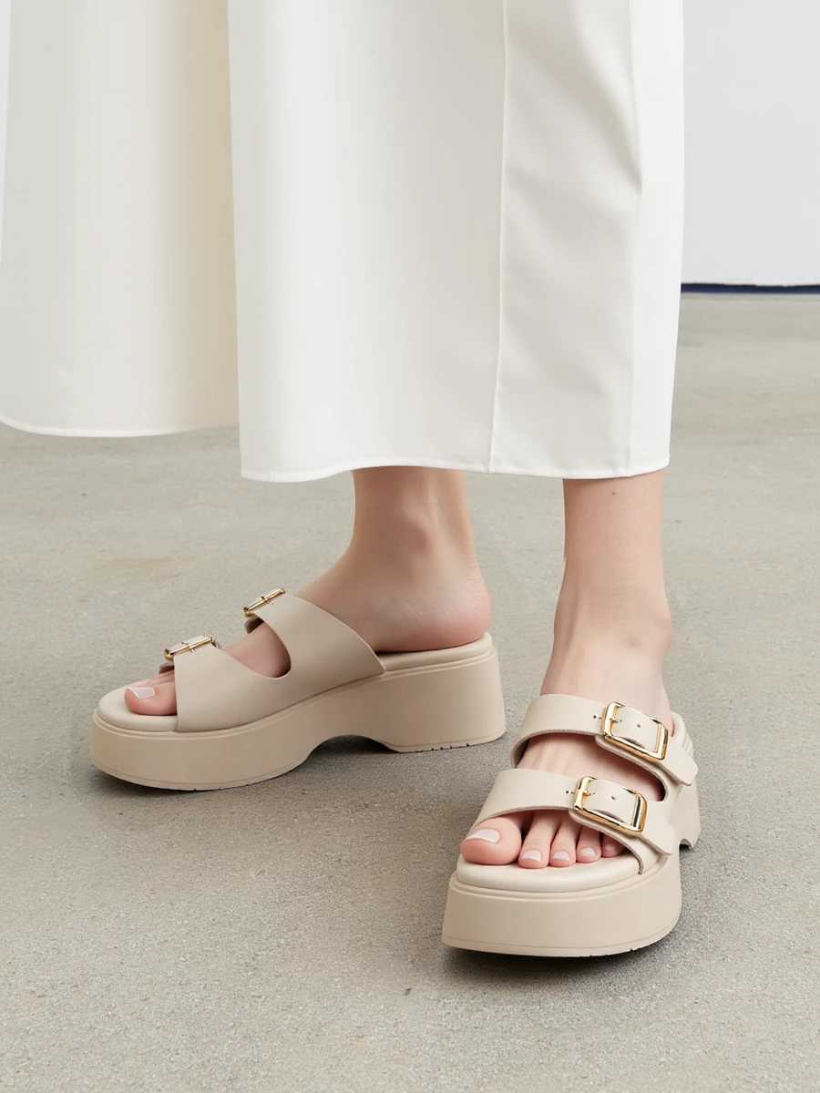 Prezentujemy eleganckie i wygodne klapki „Eleganza”, które będą idealnym dodatkiem do Twojej letniej garderoby. Wykonane z wysokiej jakości materiałów, te klapki zapewniają komfort na co dzień oraz podczas letnich spacerów. Zdobione dyskretnymi, złotymi klamrami, dodają elegancji każdemu strojowi.