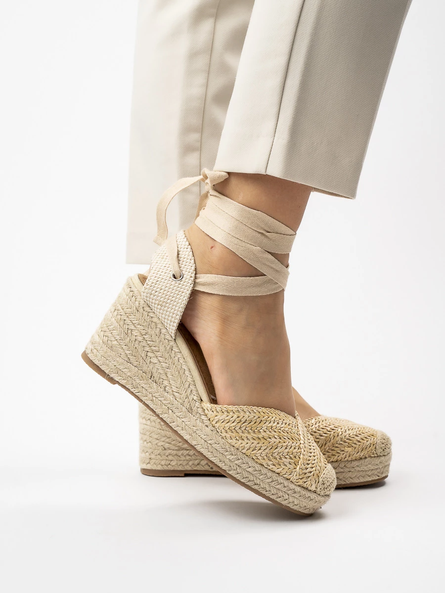 Opis produktu: Przedstawiamy klapki Esprito Beige - idealne rozwiązanie dla każdej kobiety ceniącej sobie style i komfort. Te eleganckie buty na platformie, ozdobione pięknym sznurkowym wykończeniem i detalami w postaci wiązania na kostce, zapewnią wyjątkowy wygląd na każdą okazję. Idealne do casualowych stylizacji oraz na letnie wieczory. Materiał: - Wierzch: Tkanina pleciona - Wnętrze: Skóra syntetyczna - Podeszwa: Guma