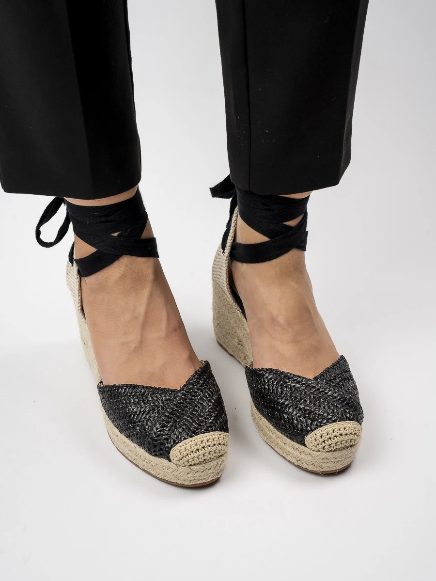 Przedstawiamy klapki Esprito Black - idealne rozwiązanie dla każdej kobiety ceniącej sobie style i komfort. Te eleganckie buty na platformie, ozdobione pięknym sznurkowym wykończeniem i detalami w postaci wiązania na kostce, zapewnią wyjątkowy wygląd na każdą okazję. Idealne do casualowych stylizacji oraz na letnie wieczory. Materiał: - Wierzch: Tkanina pleciona - Wnętrze: Skóra syntetyczna - Podeszwa: Guma