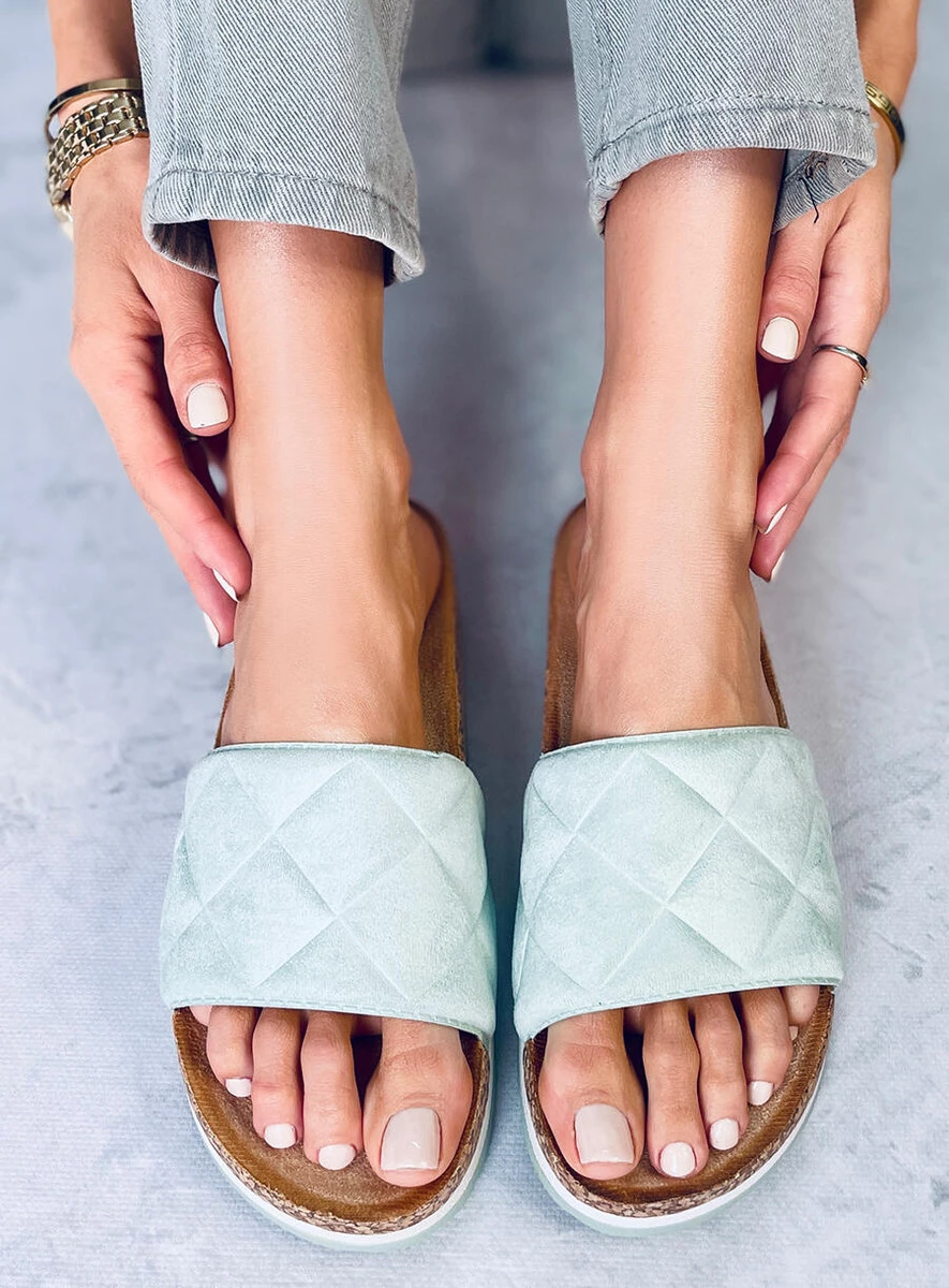 Korkowe klapki damskie. Model na wysokiej podeszwie (4 cm) idealnie wpisuje się w trendy tego sezonu. Ma być modnie i komfortowo! Szeroki, zamszowy pasek z efektownym pikowaniem świetnie trzyma stopę. Jesteśmy przekonane, że te klapki spełnią Twoje oczekiwania : ) Materiał zewnętrzny – zamsz ekologiczny.