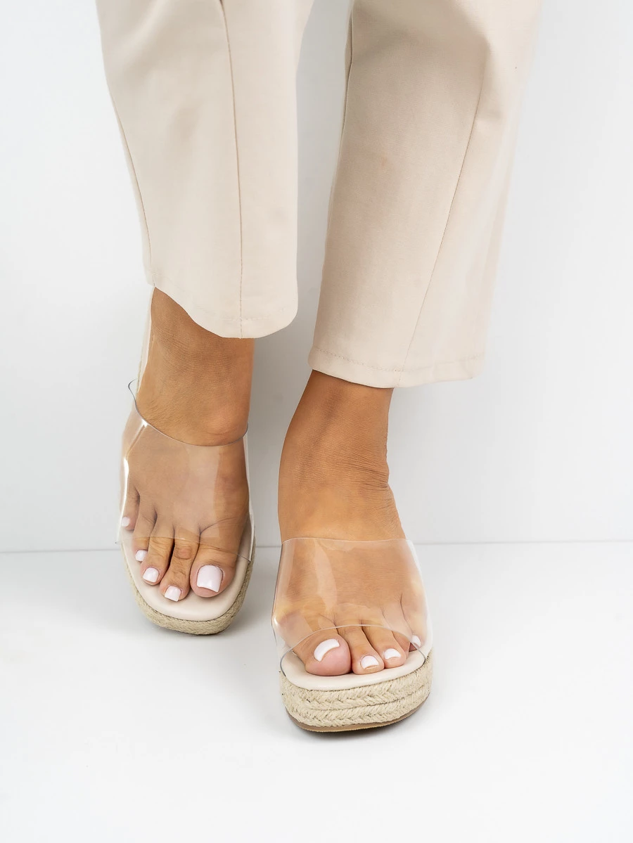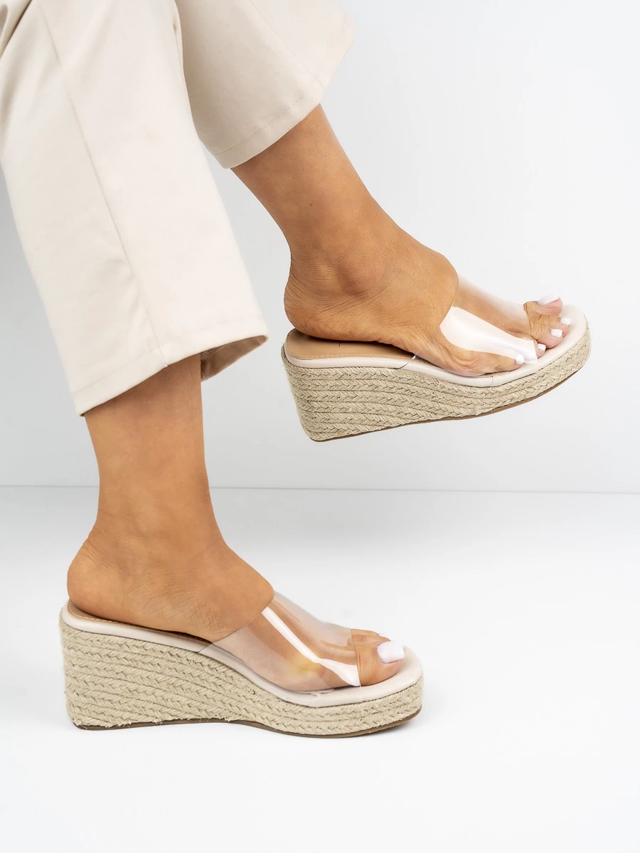 Klapki na koturnie TRANSLUCENT BEIGE