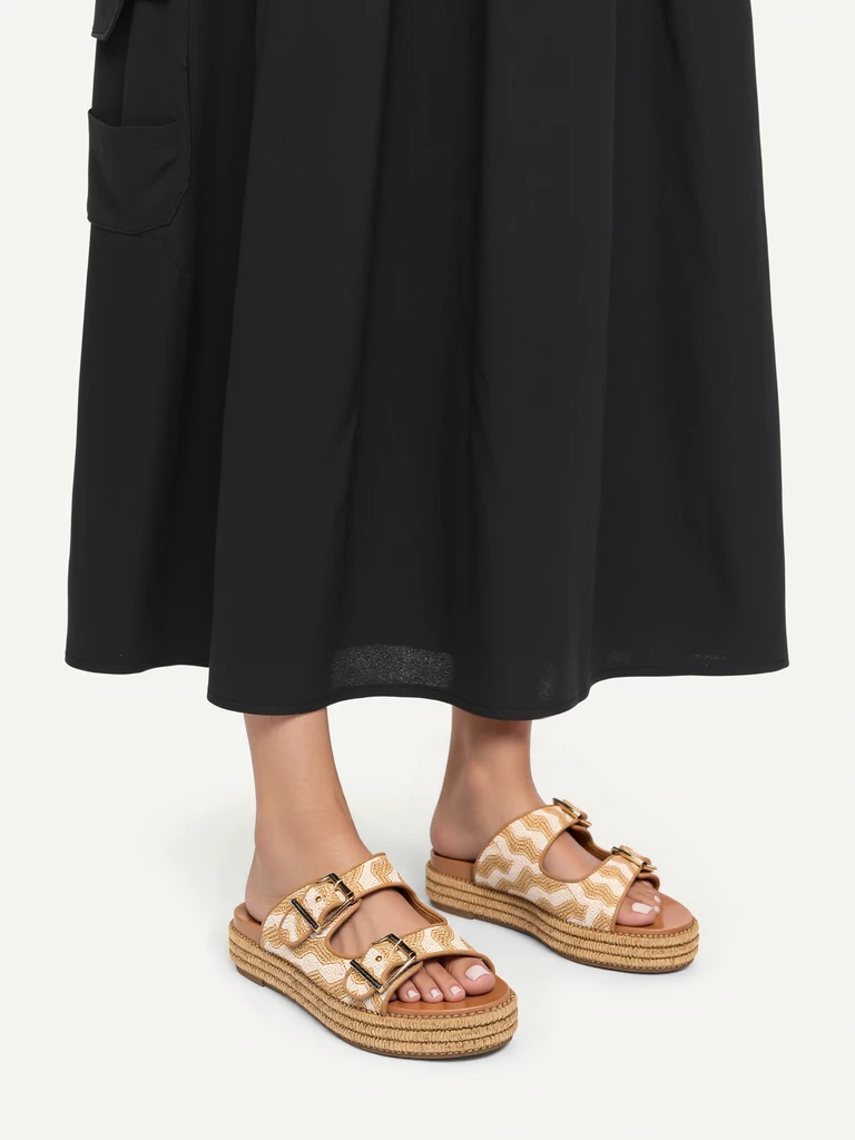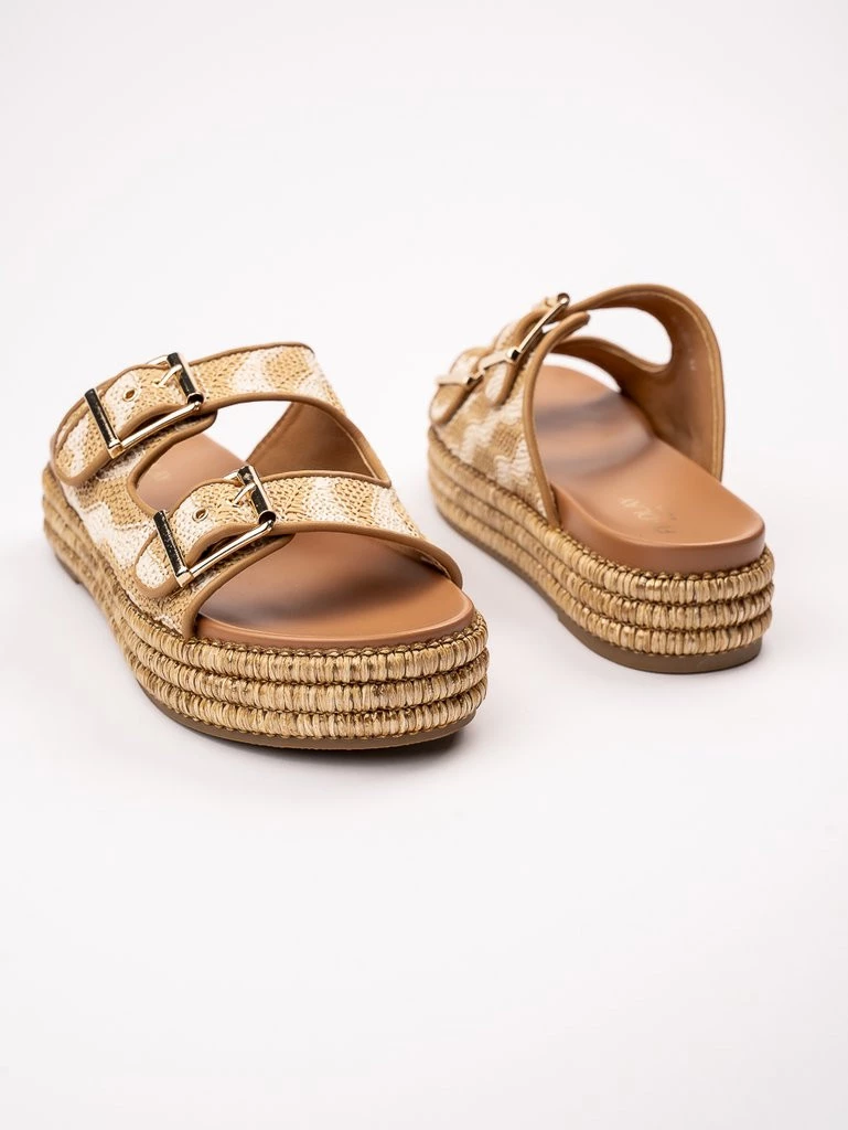 Klapki na koturnie z ozdobnymi klamrami w kolorze Beige