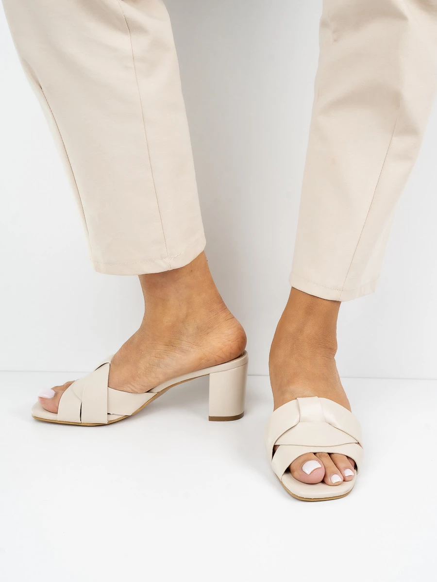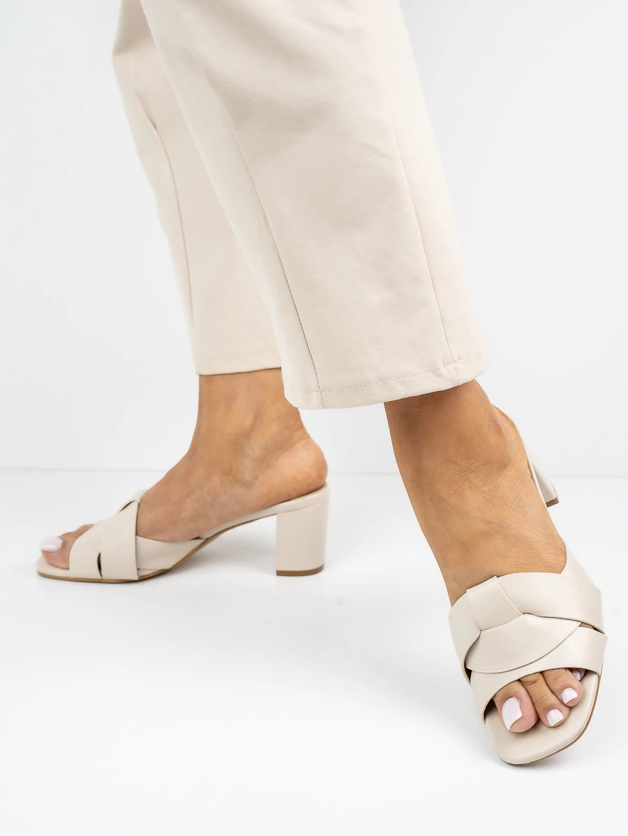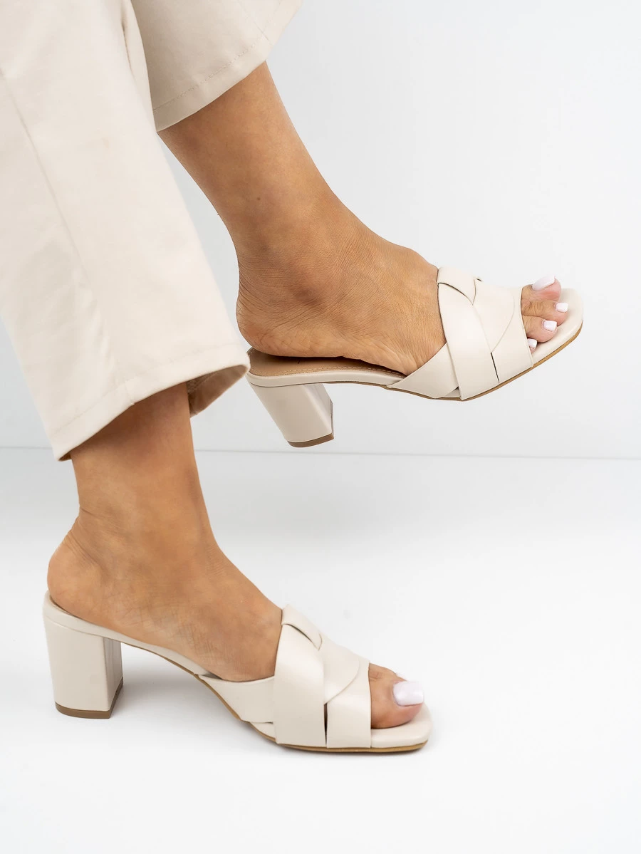 Klapki na obcasie z plecionym paskiem w kolorze BeigePU