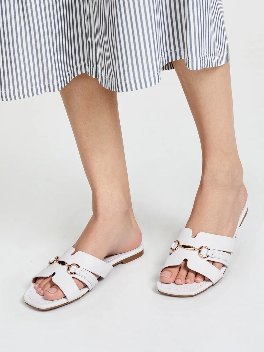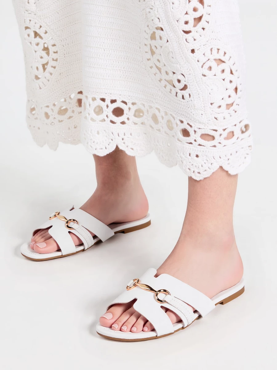 Klapki płaskie z metalową ozdobą White