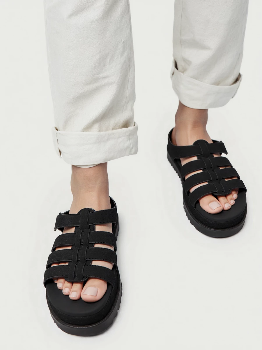 Nowoczesne i wygodne czarne klapki Street Style to idealne obuwie na co dzień. Ich charakterystyczny, miejski wygląd pasuje zarówno do casualowych, jak i nieco bardziej sportowych stylizacji. Gruba, ryflowana podeszwa zapewnia doskonałą amortyzację i przyczepność, a miękka wkładka zwiększa komfort noszenia. Regulowane paski pozwolą idealnie dopasować klapki do stopy.