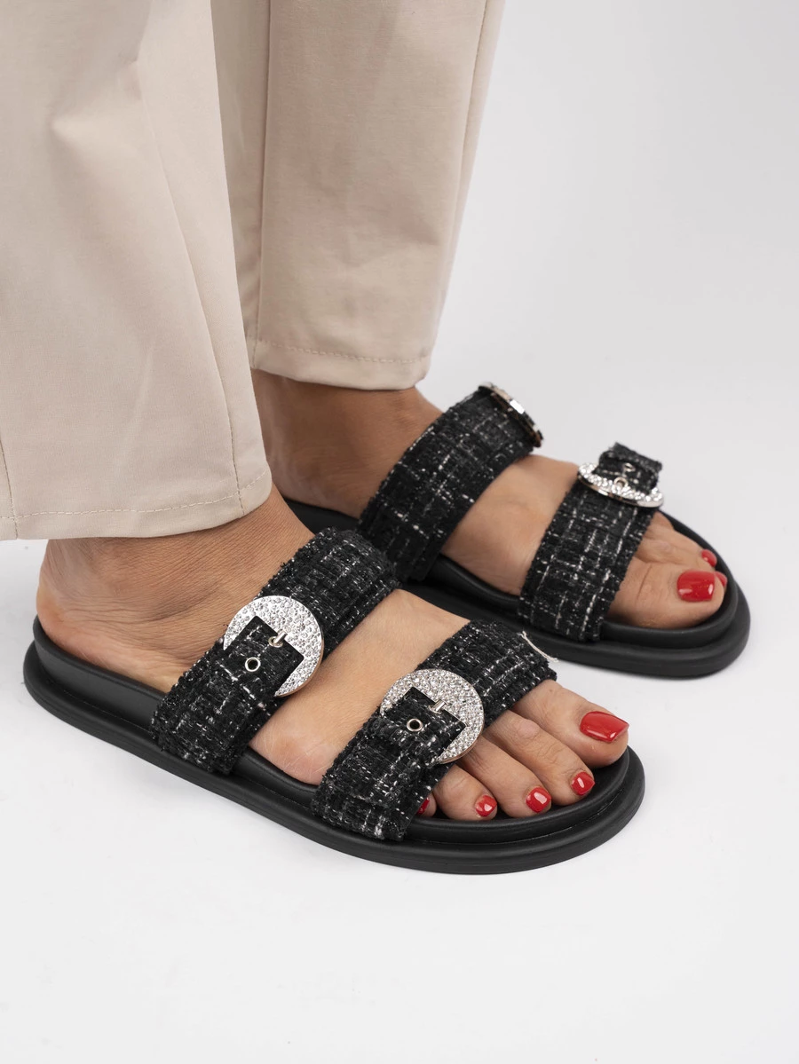 Stylowe sandały damskie wykonane z wysokiej jakości materiałów, zapewniających komfort noszenia przez cały dzień. Nowoczesny design i staranne wykończenie sprawiają, że buty są idealne na różne okazje. Wygodna konstrukcja zapewnia stabilność i dopasowanie do stopy. Te wyjątkowe buty damskie dostępne są w kolorze Black.