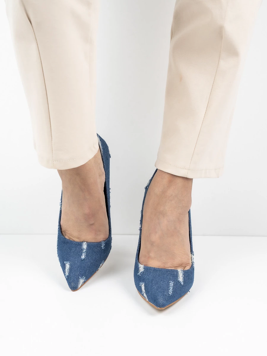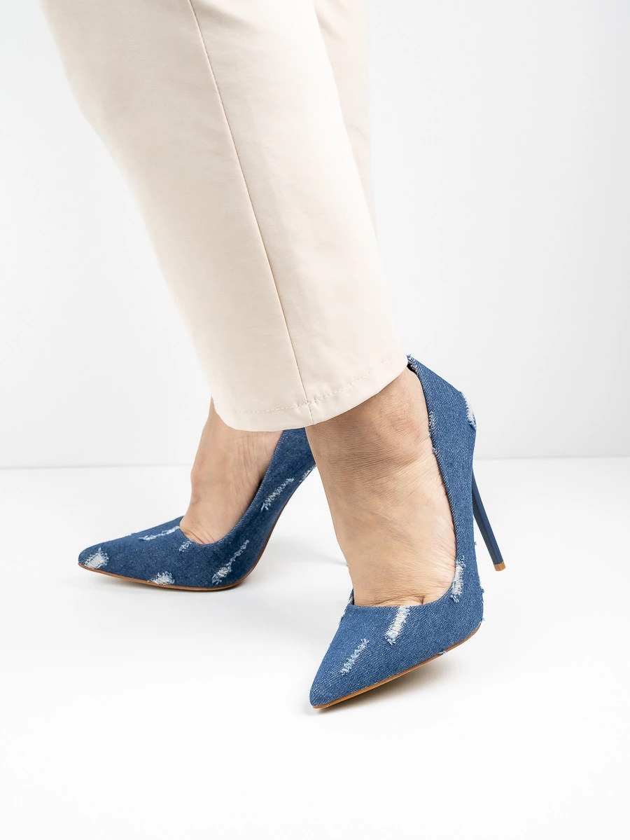 Te stylowe szpilki Denim-123 Dk to doskonały wybór dla kobiet ceniących sobie niebanalny styl. Wykonane z materiału dżinsowego z efektownym, przetartym wzorem dodają charakteru każdej stylizacji. Wysoki obcas typu szpilka podkreśla sylwetkę i dodaje elegancji. Idealne zarówno do codziennych, jak i wieczorowych zestawień. Kolor Dk dodatkowo wzbogaca ich unikalny wygląd, sprawiając, że stają się wyjątkowym elementem garderoby.