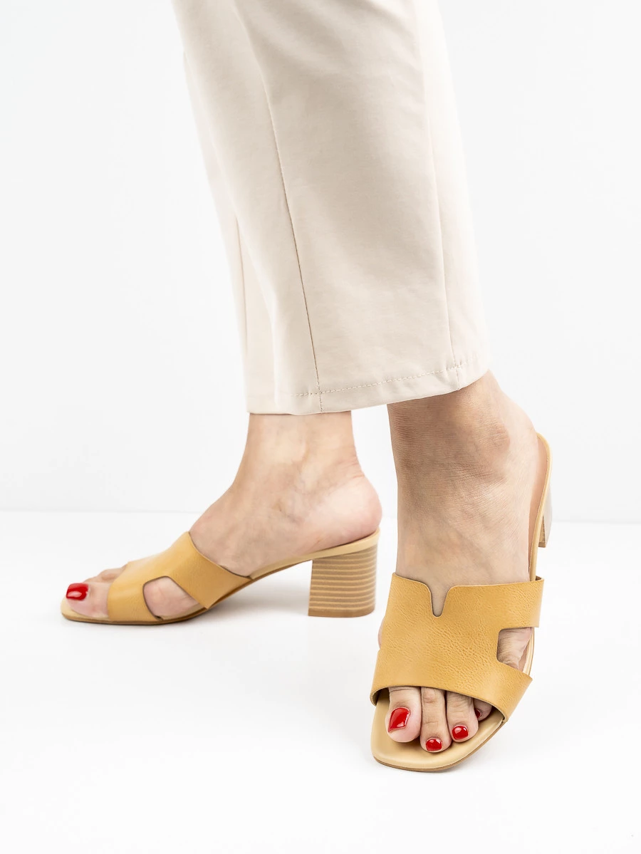 Modne klapki damskie na obcasie w kolorze Apricot