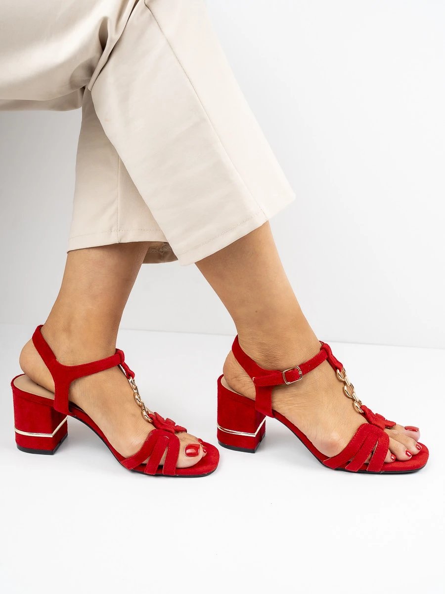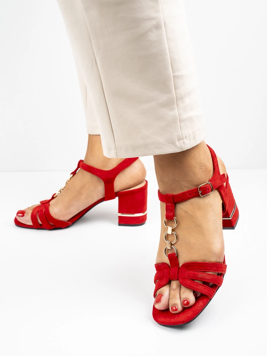 Modne sandały damskie na obcasie w kolorze Red