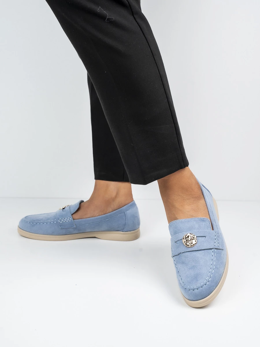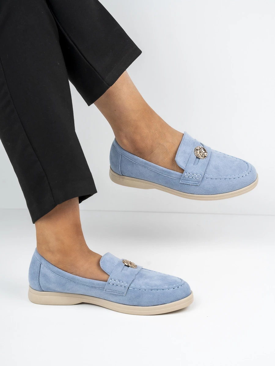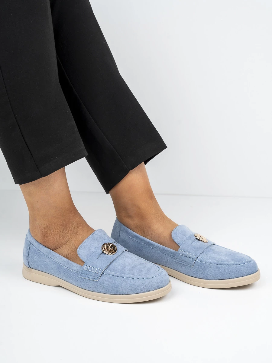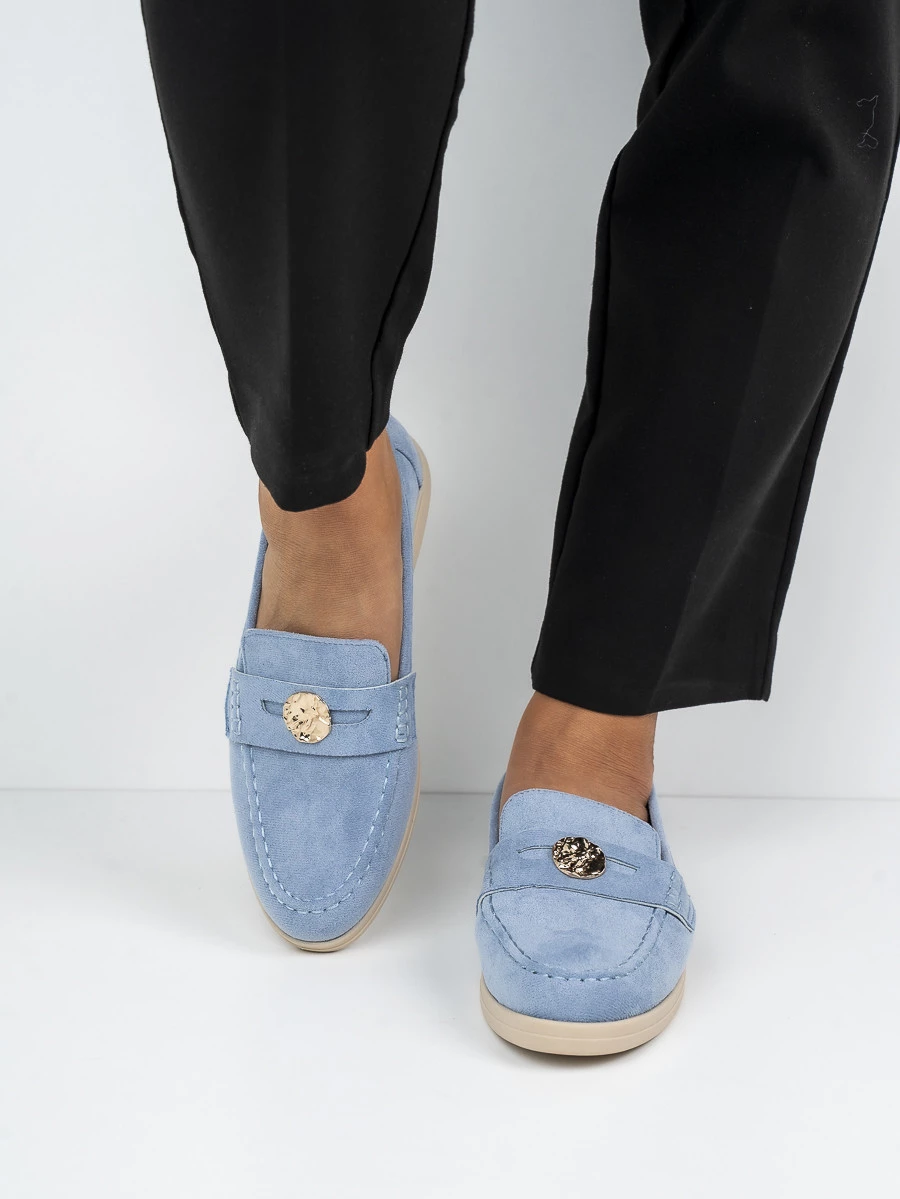 Mokasyny damskie z ozdobnym złotym guzikiem BLUE