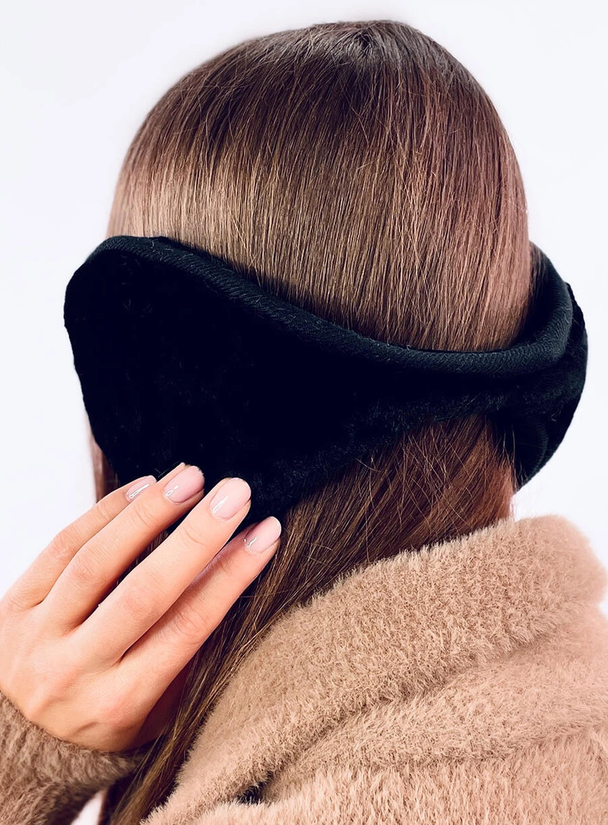 Nauszniki damskie za głowę z lamówką MONSS CZARNE