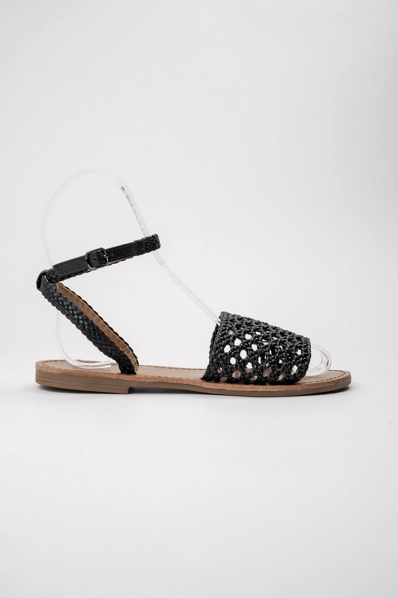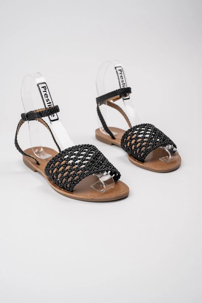 Plecione sandały damskie z paskiem na kostce BLACK