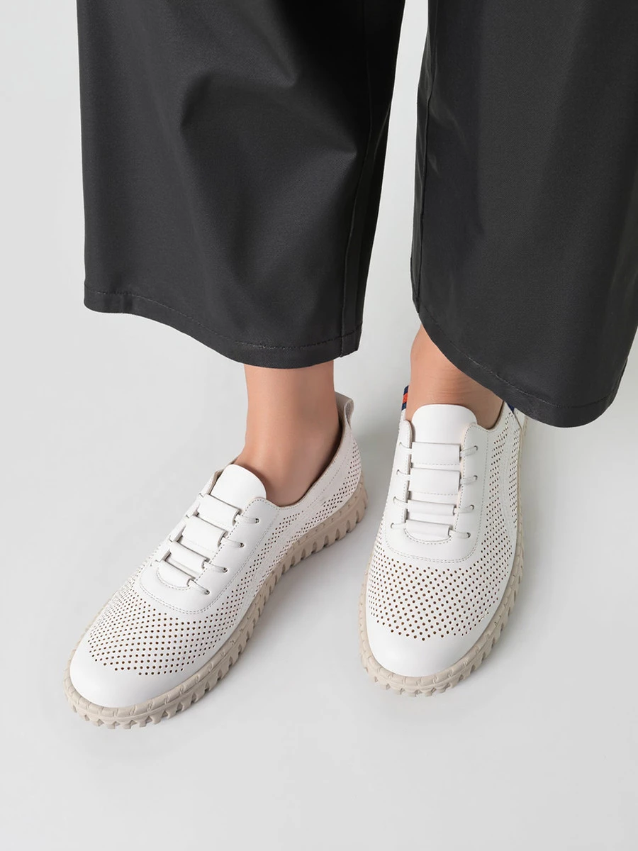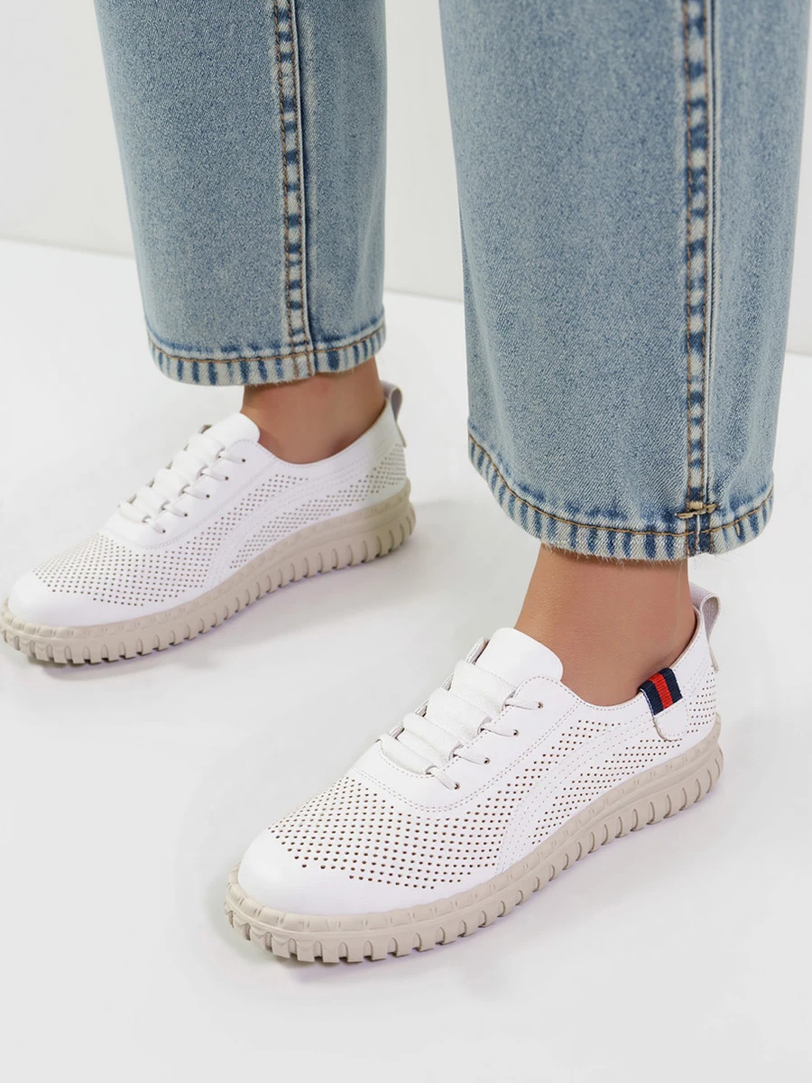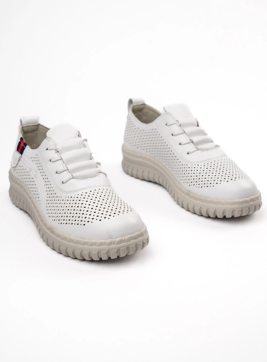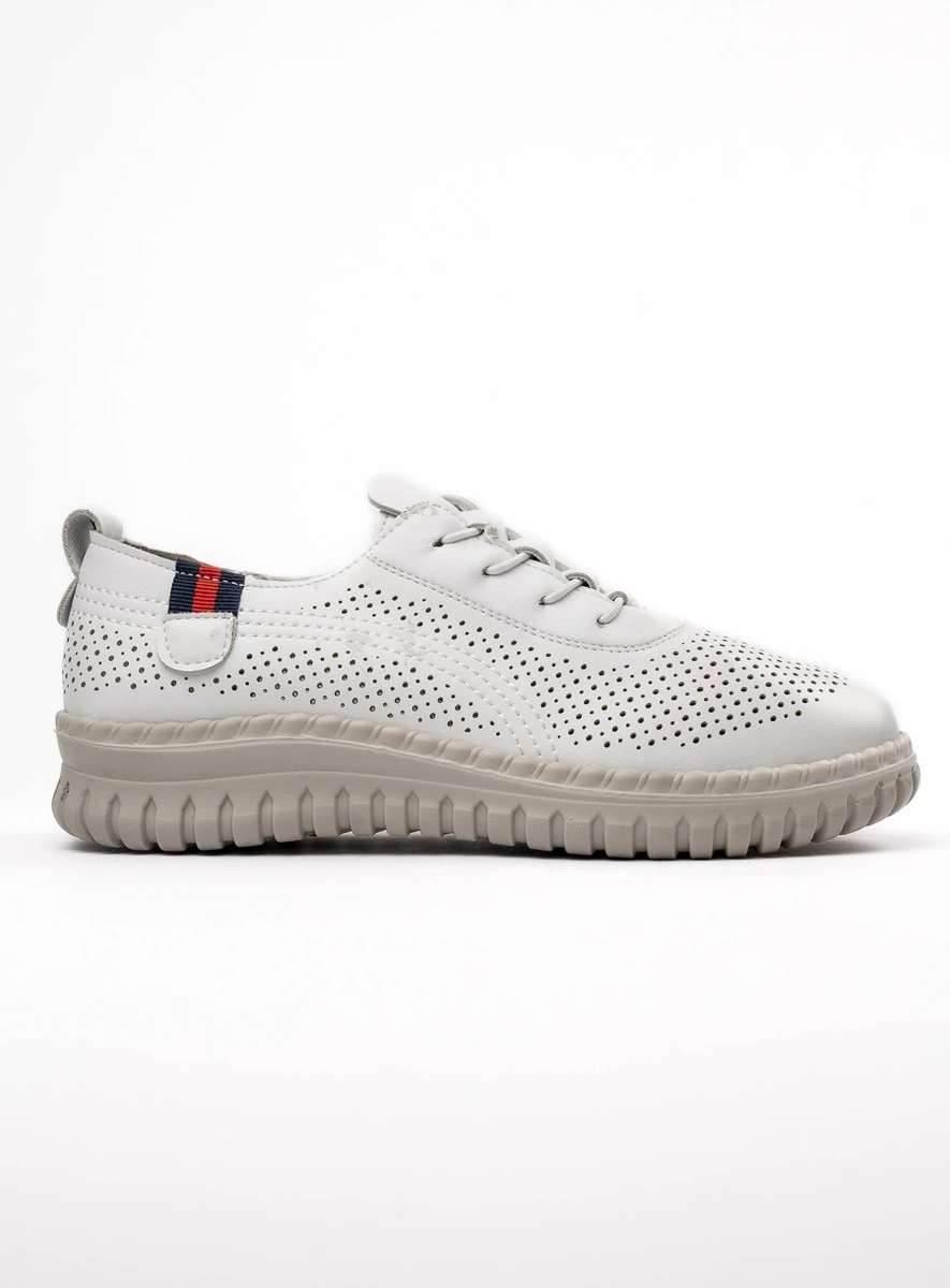 Odkryj wyjątkowe Półbuty Astra White, które łączą styl i komfort. Dzięki perforowanej powierzchni te białe buty zapewniają oddychalność, idealne na co dzień. Wysokiej jakości materiał gwarantuje trwałość i wygodę użytkowania.