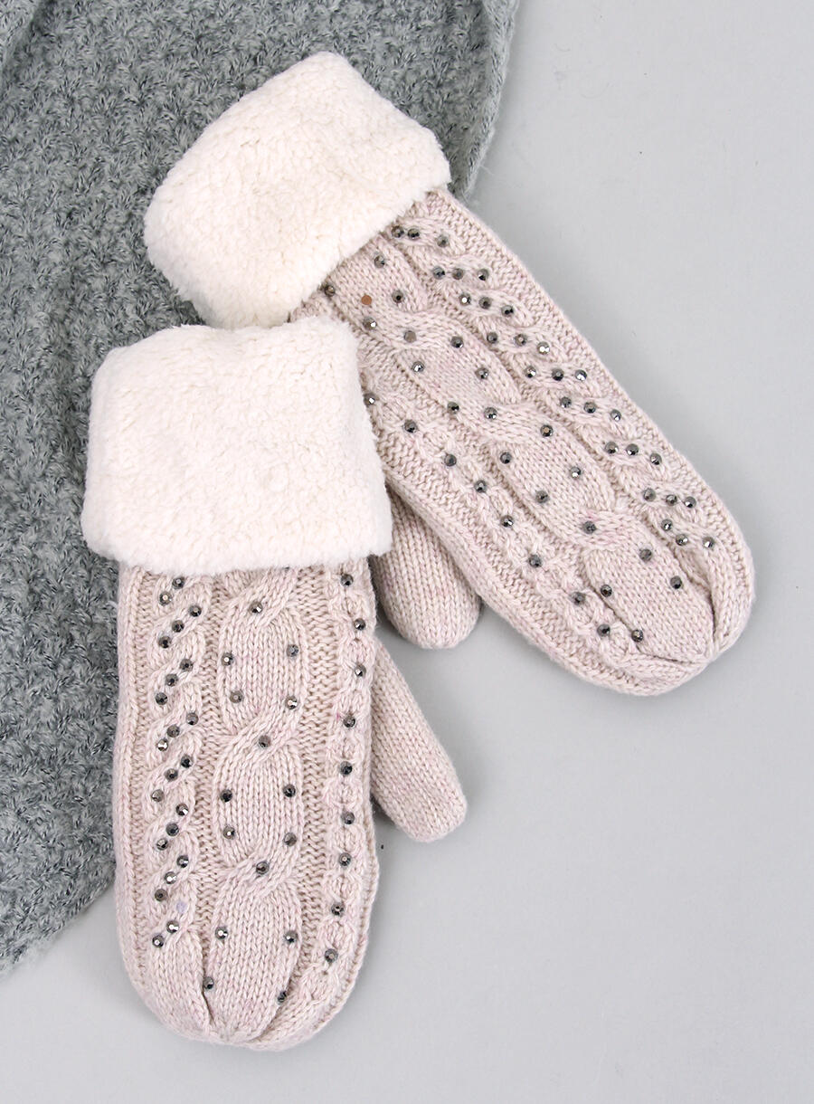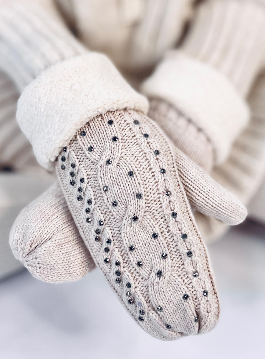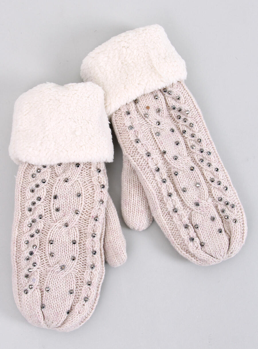 Rękawiczki damskie z cyrkoniami REGIS BEŻOWE