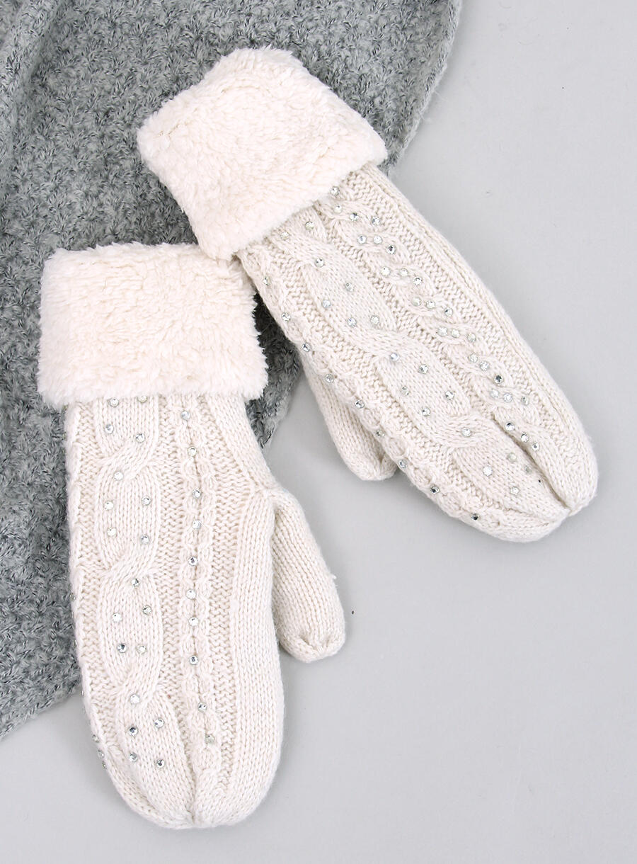 Rękawiczki damskie z cyrkoniami REGIS ECRU
