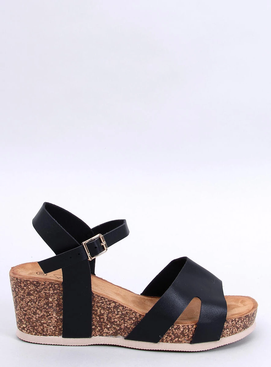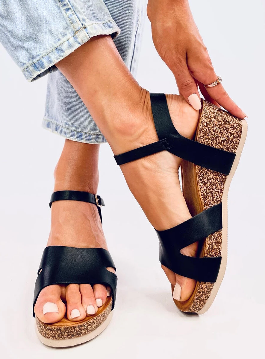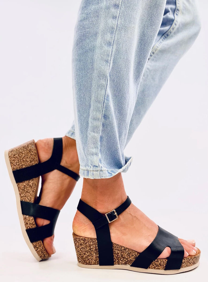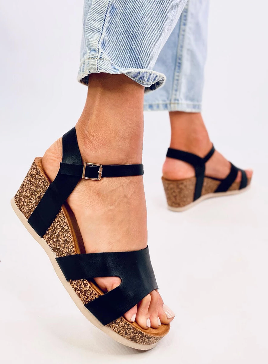 Sandałki na korkowym koturnie DIONIS BLACK