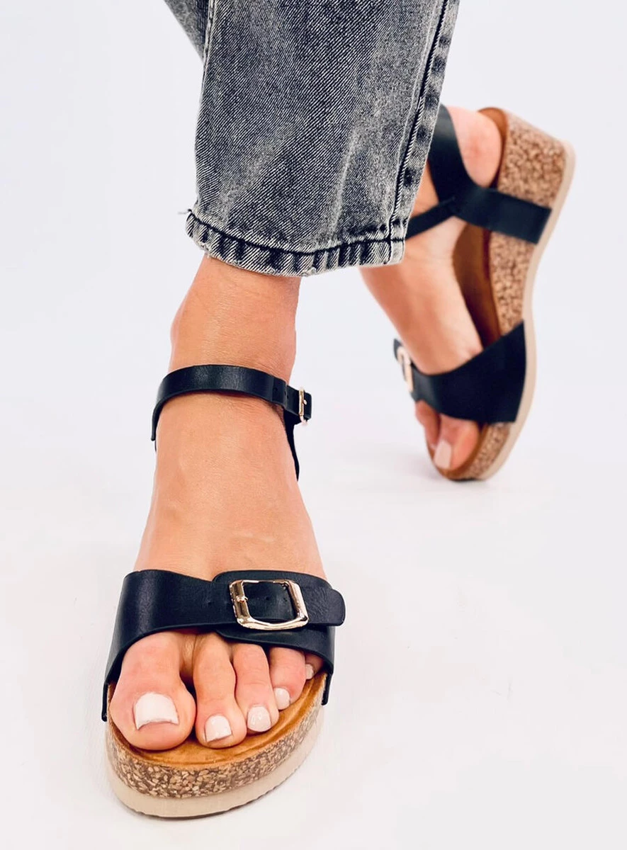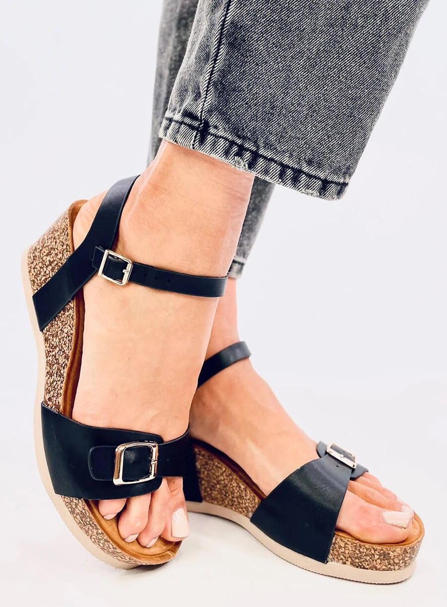 Sandałki damskie na koturnie o wysokości 6 cm i platformie 2,5 cm. Ich niewątpliwym atutem jest profilowana wkładka, dzięki której będziesz mogła przemierzyć w nich wiele kilometrów, a regulowane zapięcie wokół kostki oraz klamerki zapewnią idealne dopasowanie. Nie czekaj i zamów je już dziś : ) Materiał zewnętrzny – skóra ekologiczna.
