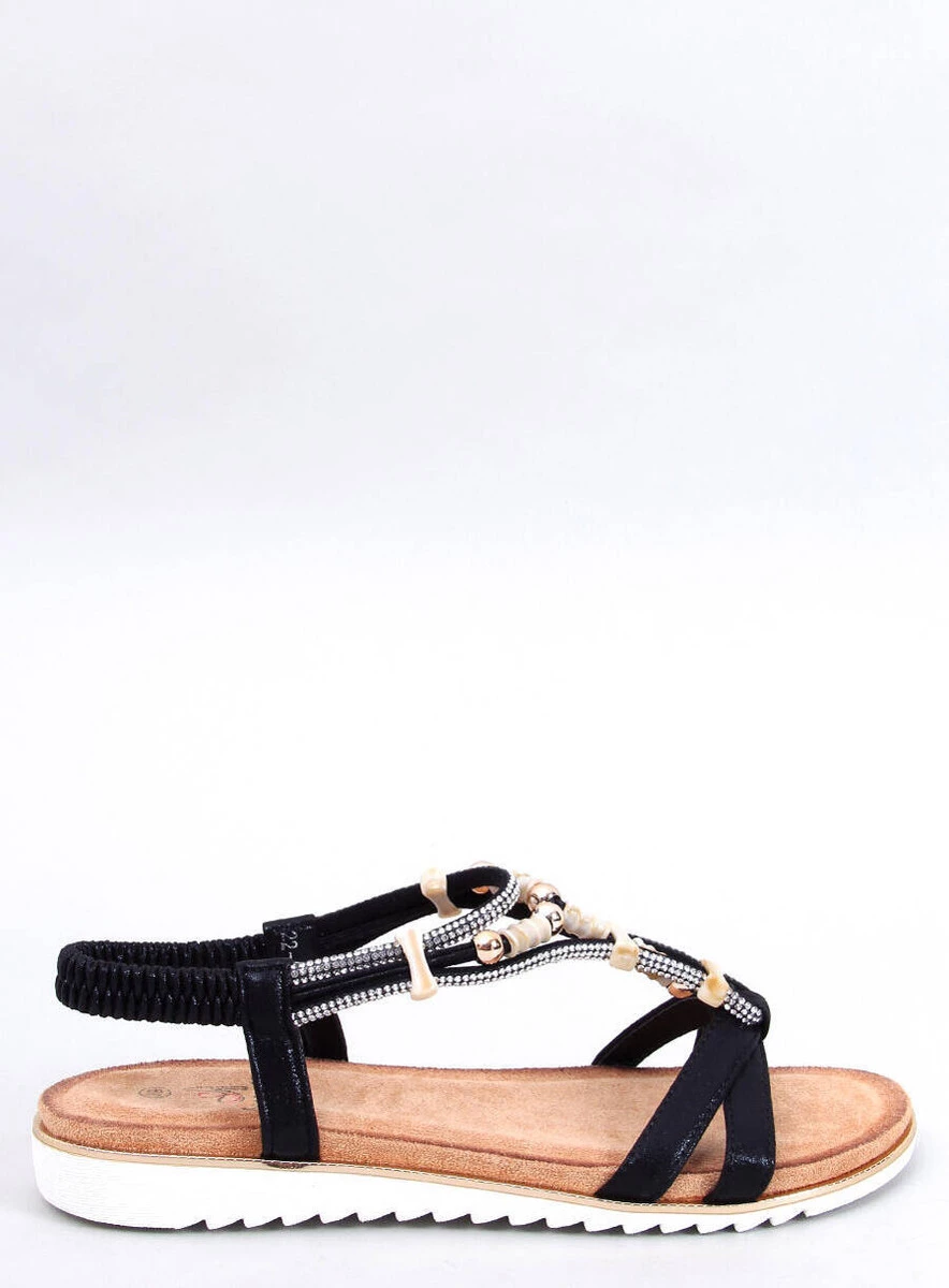 Metaliczne sandałki damskie. Połyskujące paski wysadzane cyrkoniami i kamieniami dodają butom blasku. Wybierając je nie musisz się już martwić o dodatki, bo te sandałki są ozdobą same w sobie! Materiał zewnętrzny – skóra ekologiczna + tkanina.