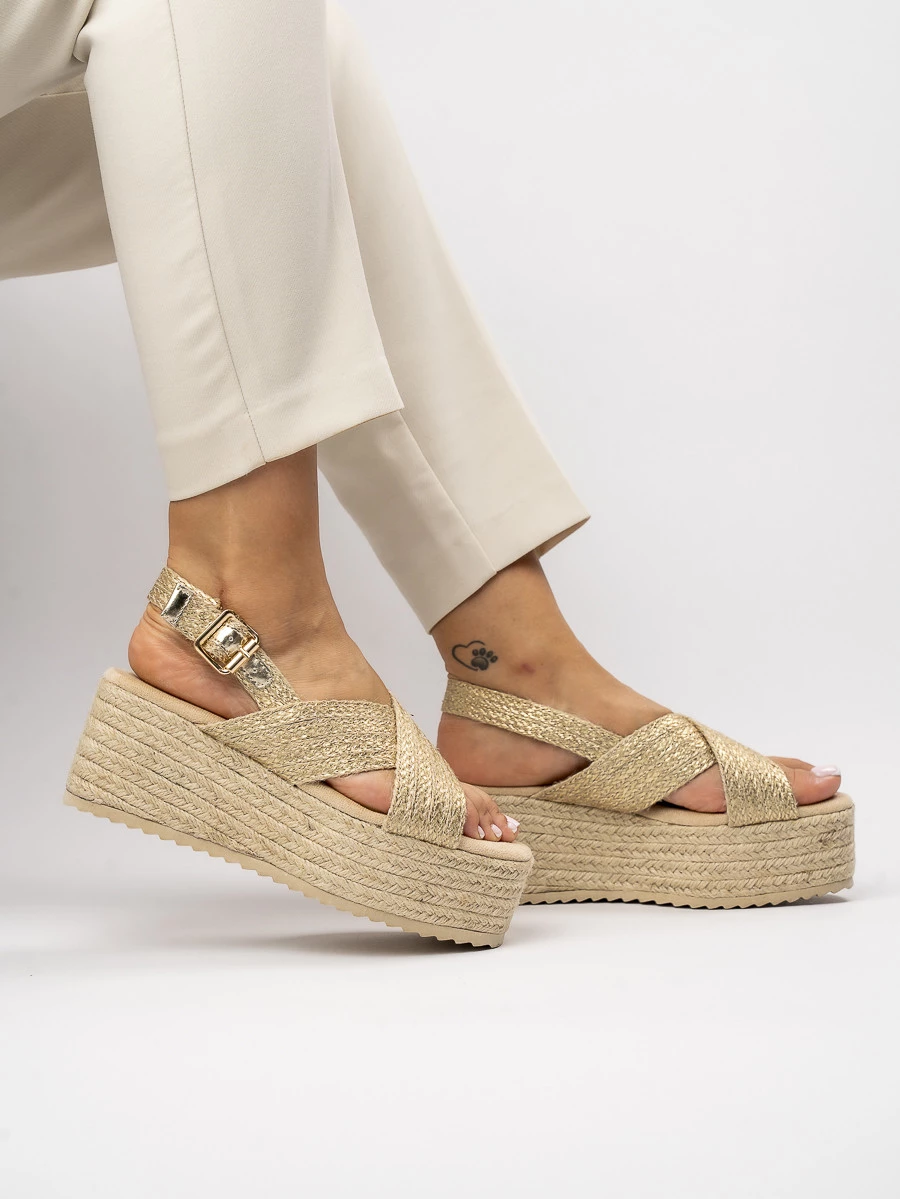 Sandały Aurelia Gold to wyjątkowe obuwie na platformie, które łączy elegancję ze stylowym designem. Wykonane z dbałością o każdy detal, złote sandały świetnie nadają się na letnie przyjęcia i codzienne wyjścia. Dzięki solidmym paskom i wygodnej platformie, oferują komfort noszenia przez cały dzień. Te sandały w kolorze gold podkreślą każdą stylizację, przyciągając uwagę swym niepowtarzalnym wyglądem. Idealne na lato, zarówno na plażę, jak i na miasto.