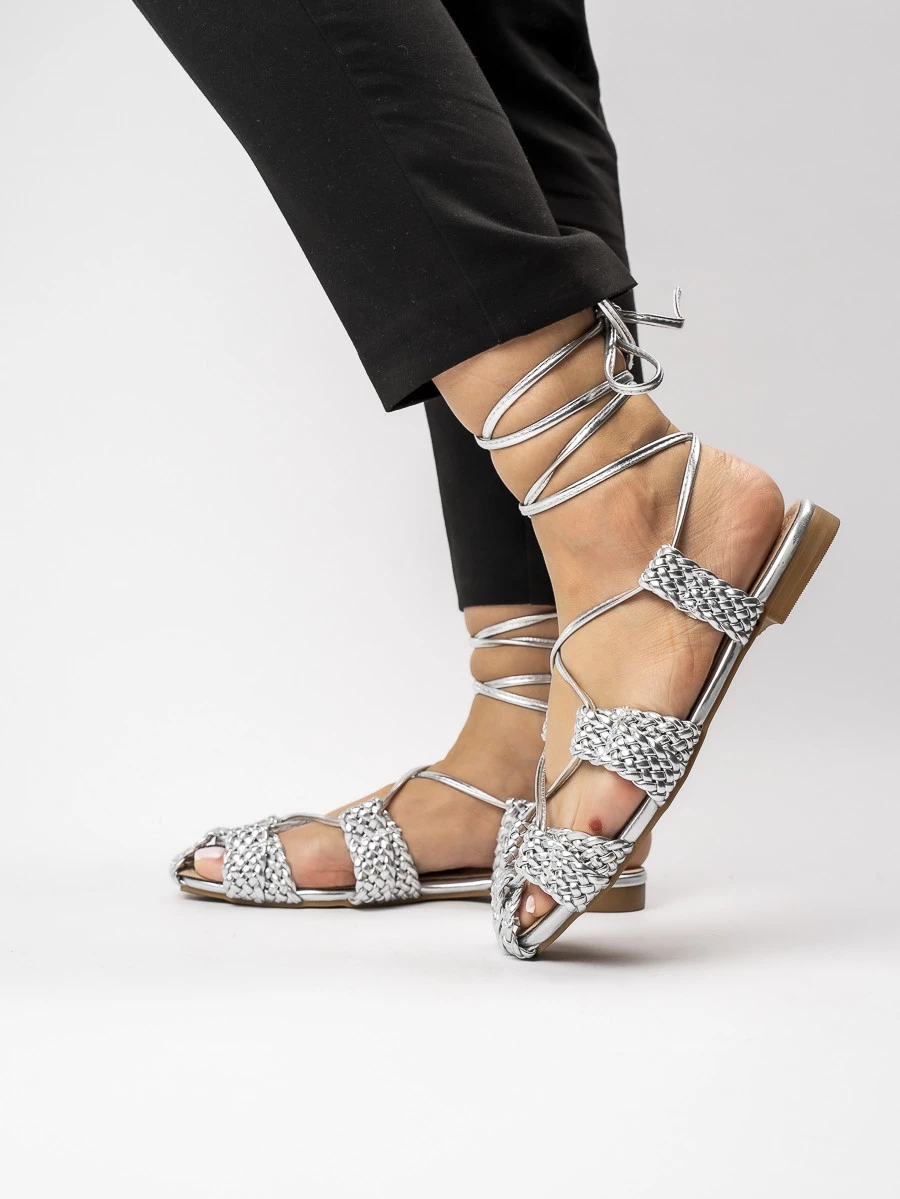 Sandały Aurora Silver to doskonały wybór na ciepłe dni. Stylowy, pleciony pasek dodaje unikalnego charakteru, a srebrny kolor sprawia, że buty są eleganckie i modne. Świetnie sprawdzą się podczas letnich spacerów czy casualowych spotkań. Dzięki wygodnemu krojowi i sznurowadłom, zapewniają optymalny komfort użytkowania. Idealne na co dzień, jak i na specjalne okazje, takie jak letnie przyjęcia czy wieczory na plaży.