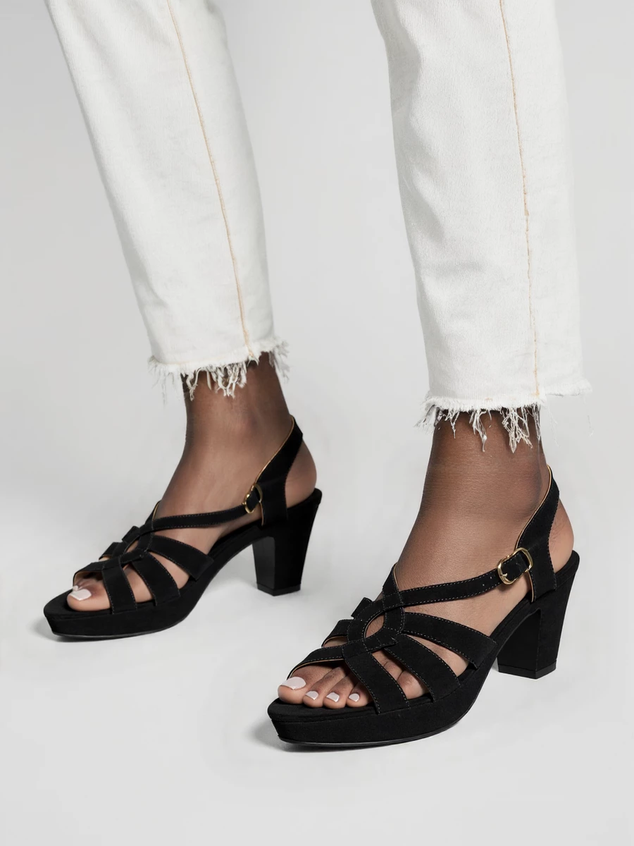 Sandały Eleganza Czarne to doskonały wybór dla każdej kobiety ceniącej sobie połączenie elegancji i komfortu. Idealne do letnich stylizacji, sprawdzą się zarówno na specjalne okazje, jak i codziennie. Charakterystyczne, plecione paski w połączeniu z subtelnymi złotymi elementami dodają im wyjątkowego charakteru, a stabilny obcas zapewnia komfort podczas chodzenia.