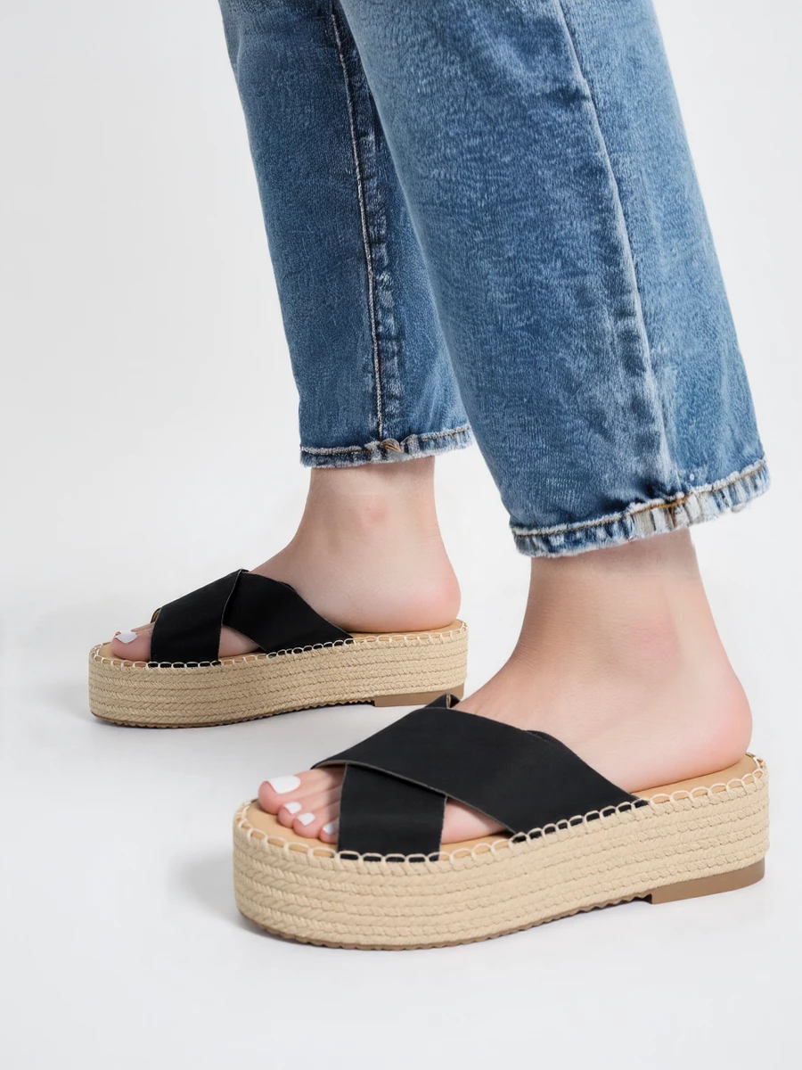 sandały damskie na stabilnym obcasie z paskami BLACK