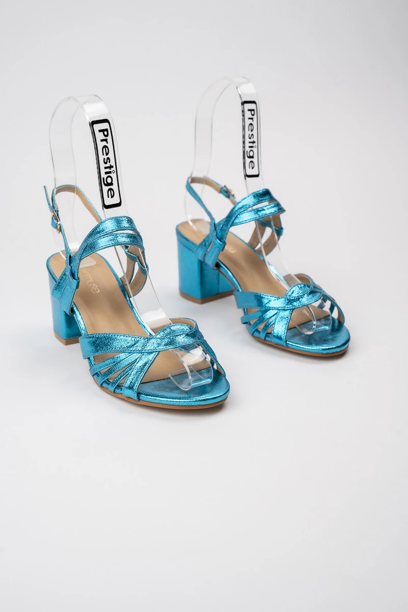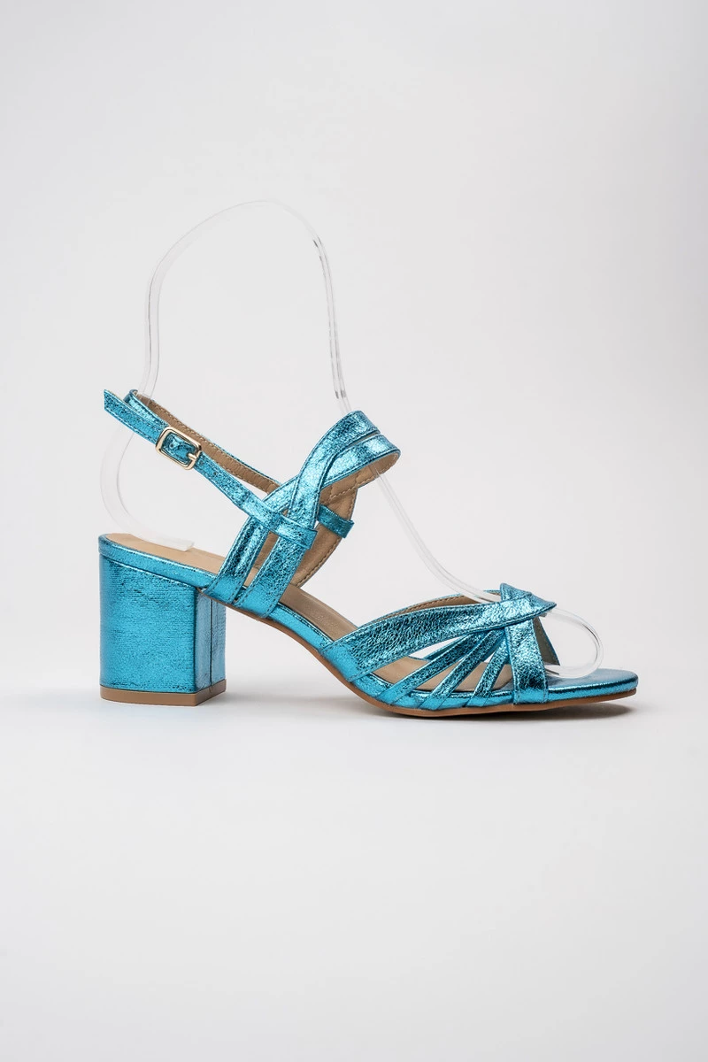 Te niebieskie sandały to idealne połączenie klasy i wygody. Stabilny, średniej wysokości obcas zapewnia komfort noszenia przez dłuższy czas, a finezyjne paski subtelnie zdobią stopę, podkreślając kobiecy charakter butów. Pasek na kostce z klamrą pozwala na idealne dopasowanie. Doskonałe na wieczorne wyjścia, spotkania i formalne okazje, dodając elegancji każdej stylizacji.