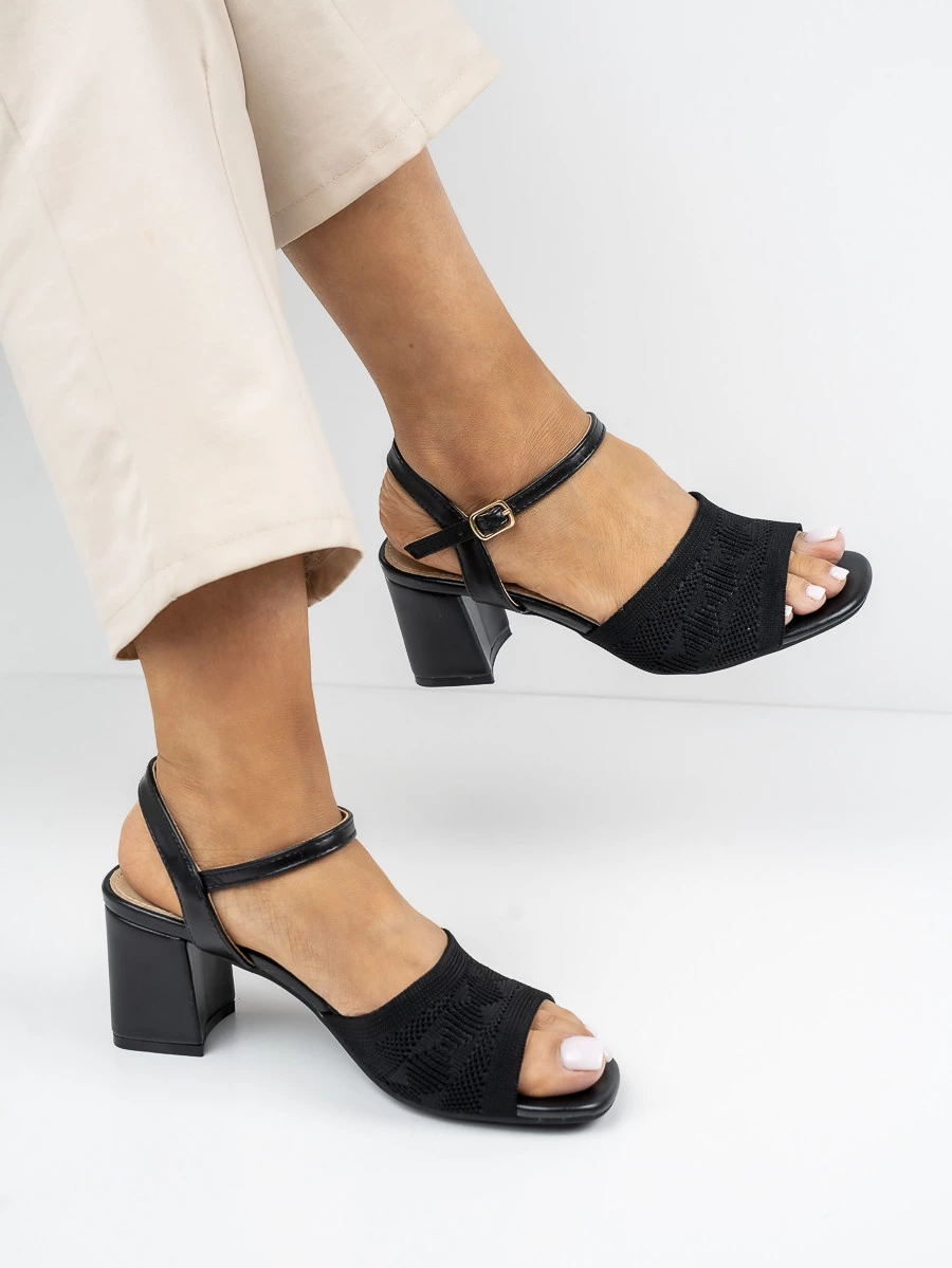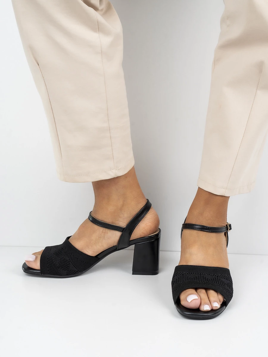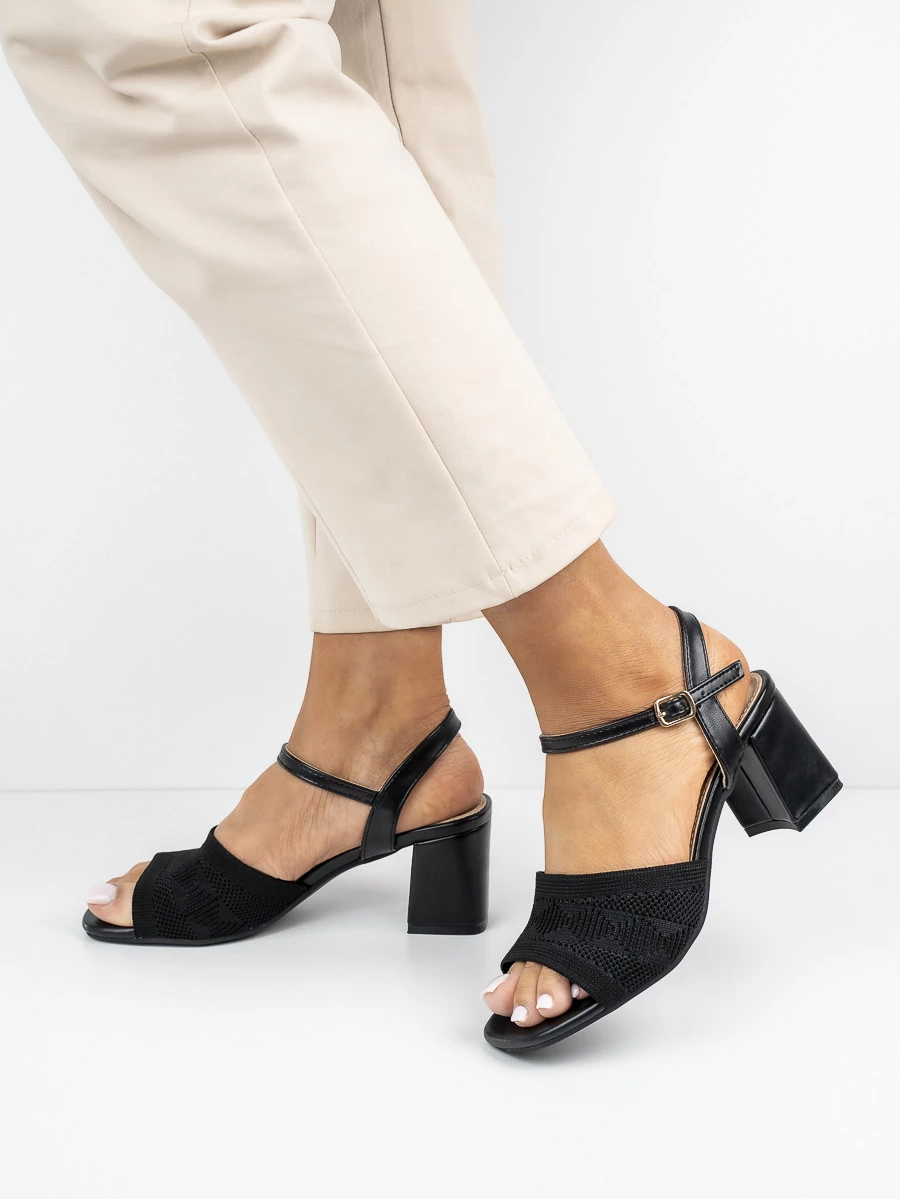 Sandały eleganckie damskie z siateczką na obcasie w kolorze Black