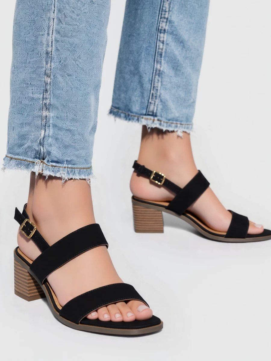 Sandały Elegancko-Czarne to kwintesencja stylu i komfortu. Idealne na letnie dni, zapewnią komfort podczas długich spacerów. Klasyczny czarny kolor oraz subtelny, ale stabilny obcas sprawiają, że mogą stanowić doskonałe uzupełnienie zarówno codziennych, jak i bardziej eleganckich stylizacji.