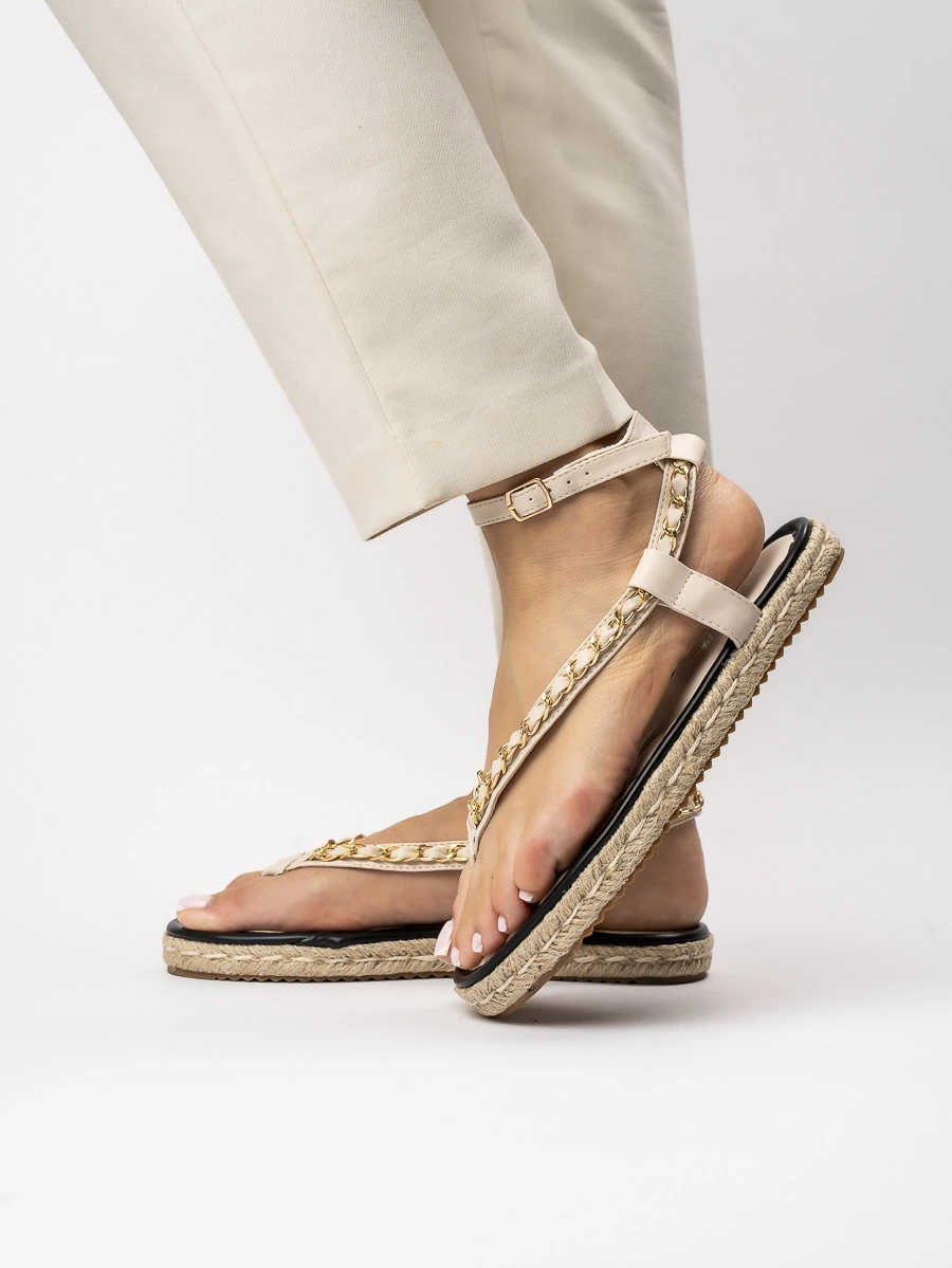 Stylowe sandały Marbella w kolorze beige to doskonały wybór na letnie dni. Wykonane z dbałością o detale, z ozdobnym paskiem, zapewniają komfort podczas codziennych spacerów. Ich uniwersalny design sprawia, że doskonale pasują do każdej letniej stylizacji.