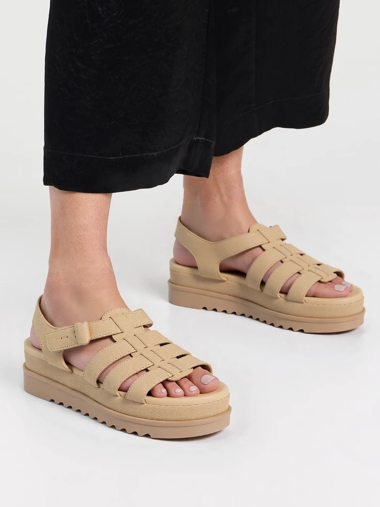 Sandały na koturnie z paskami w kolorze Khaki