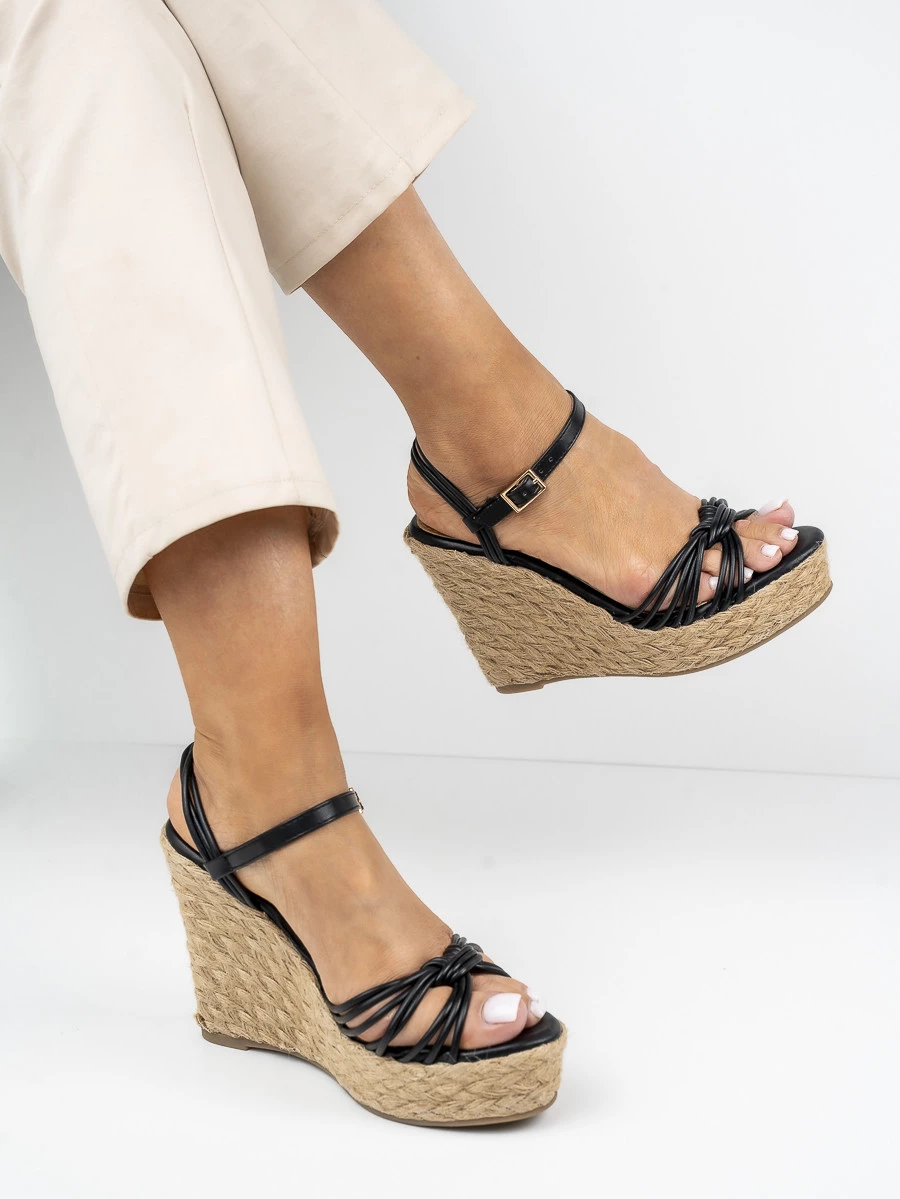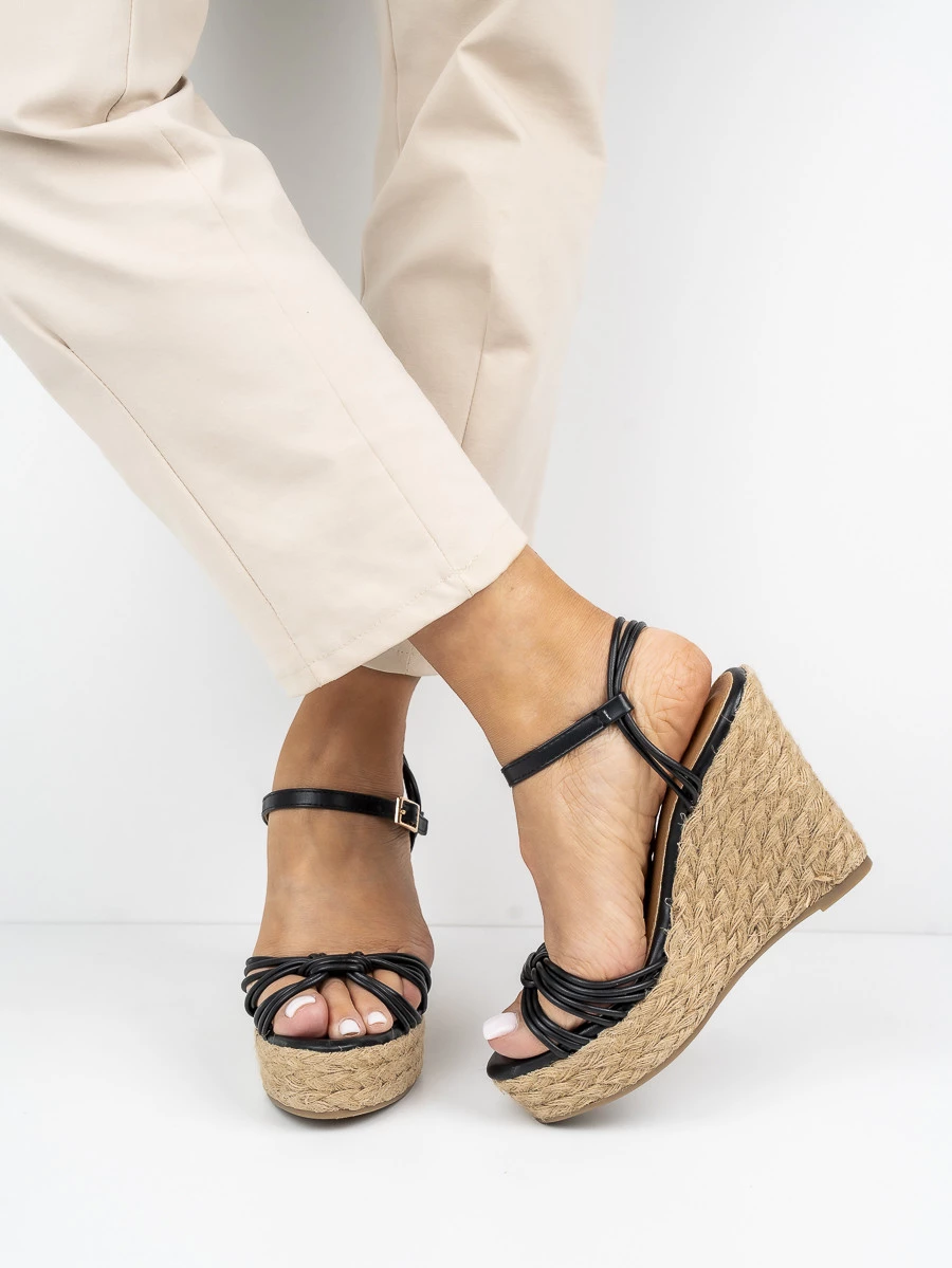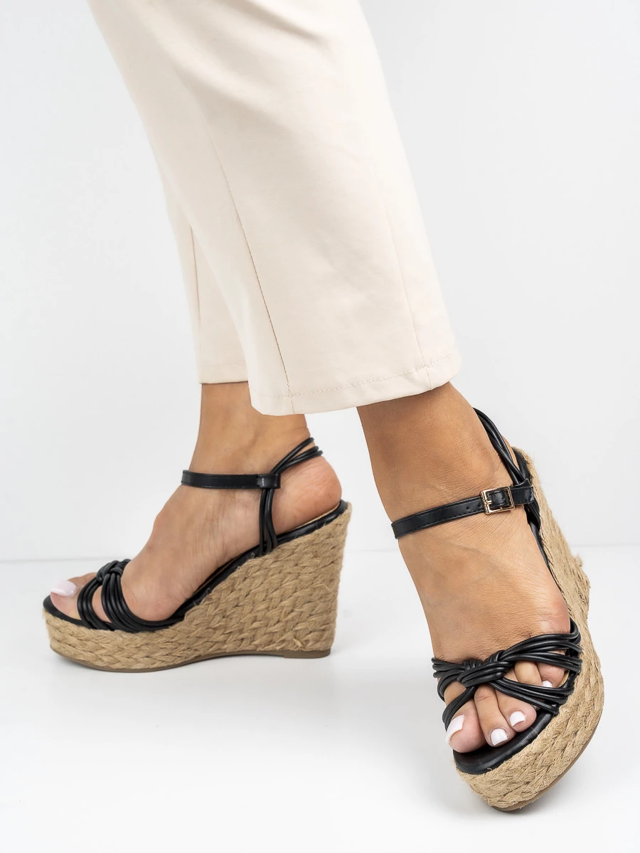 Sandały na koturnie z plecioną podeszwą w kolorze Black