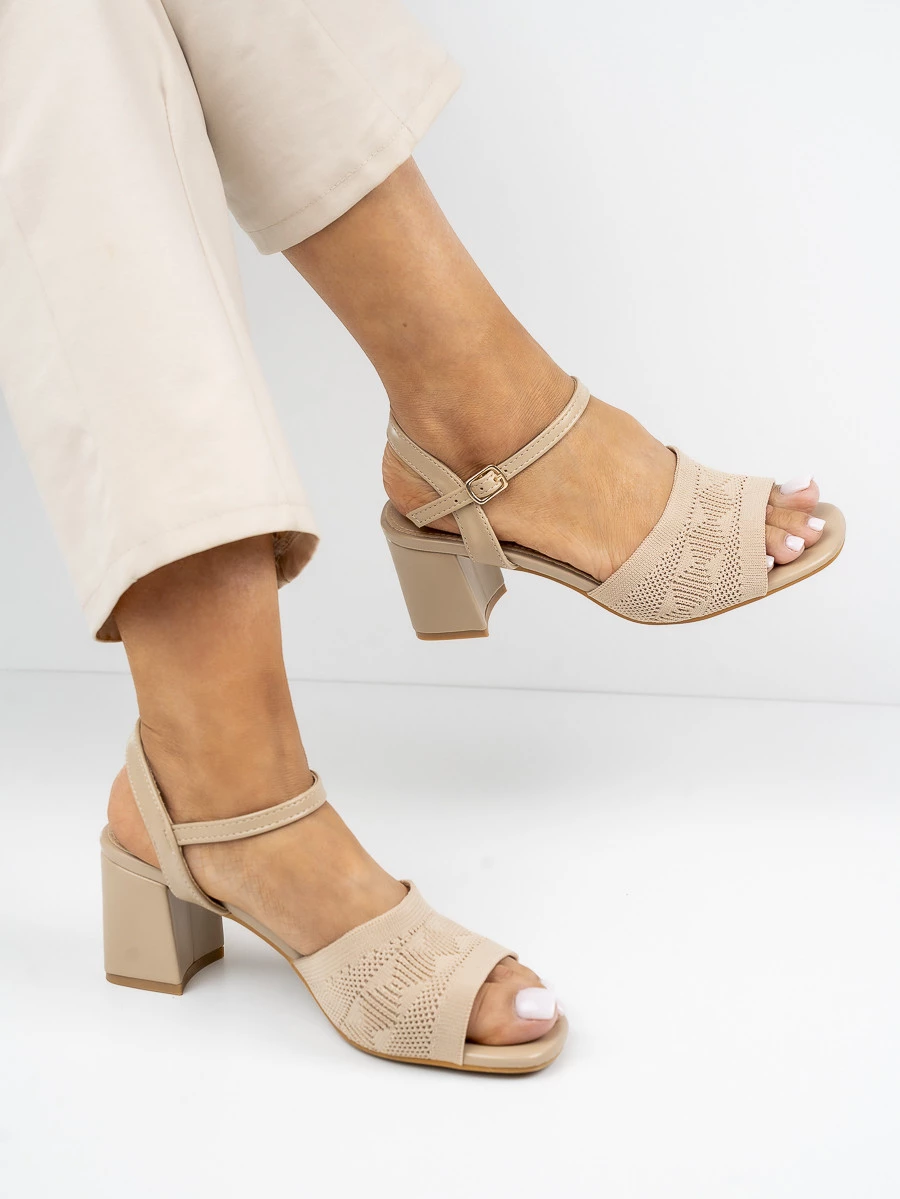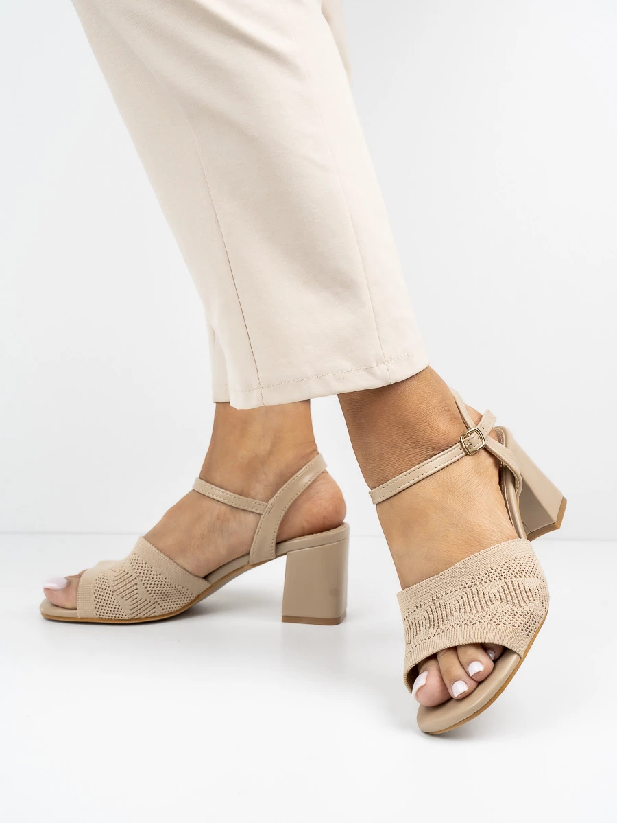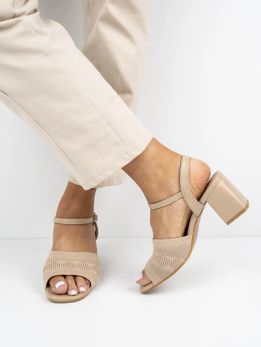 Sandały na obcasie z ażurowym przodem w kolorze Khaki