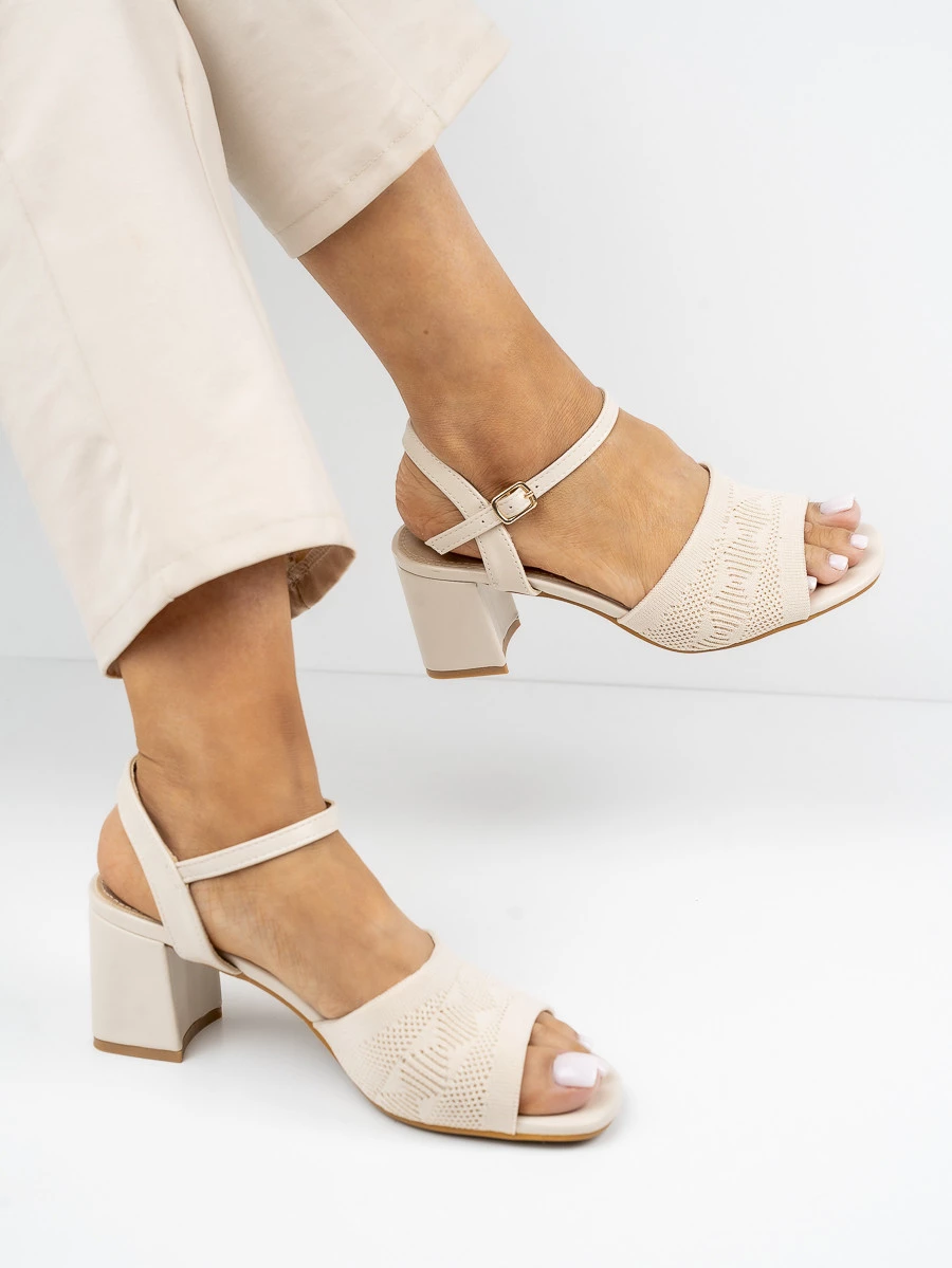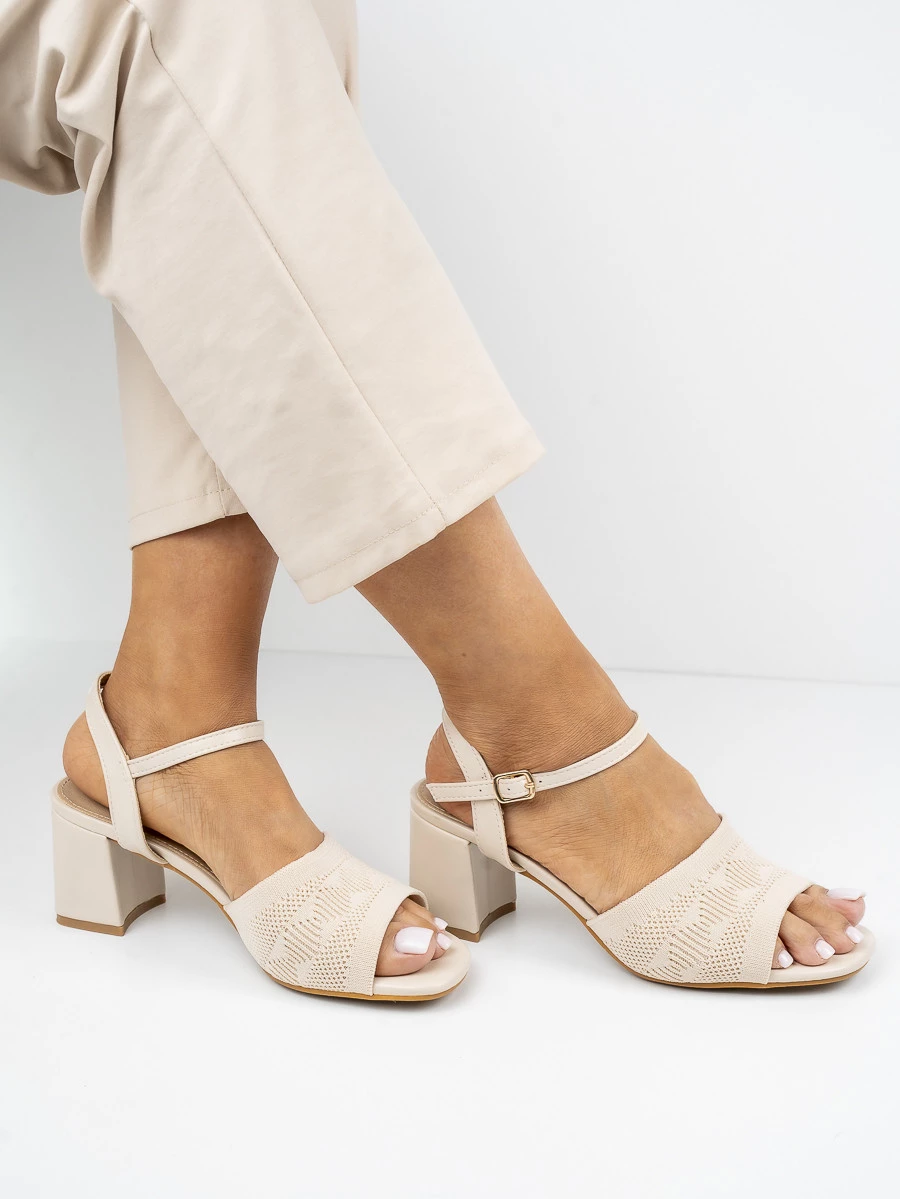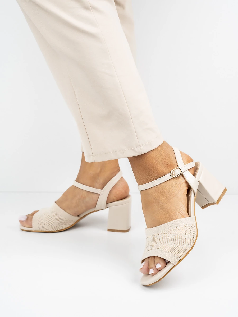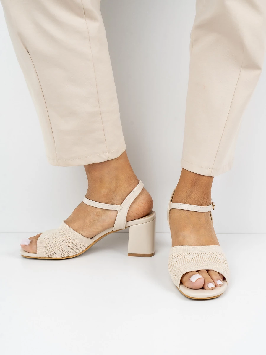Sandały na obcasie z ażurowym wzorem w kolorze Beige