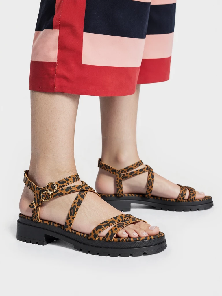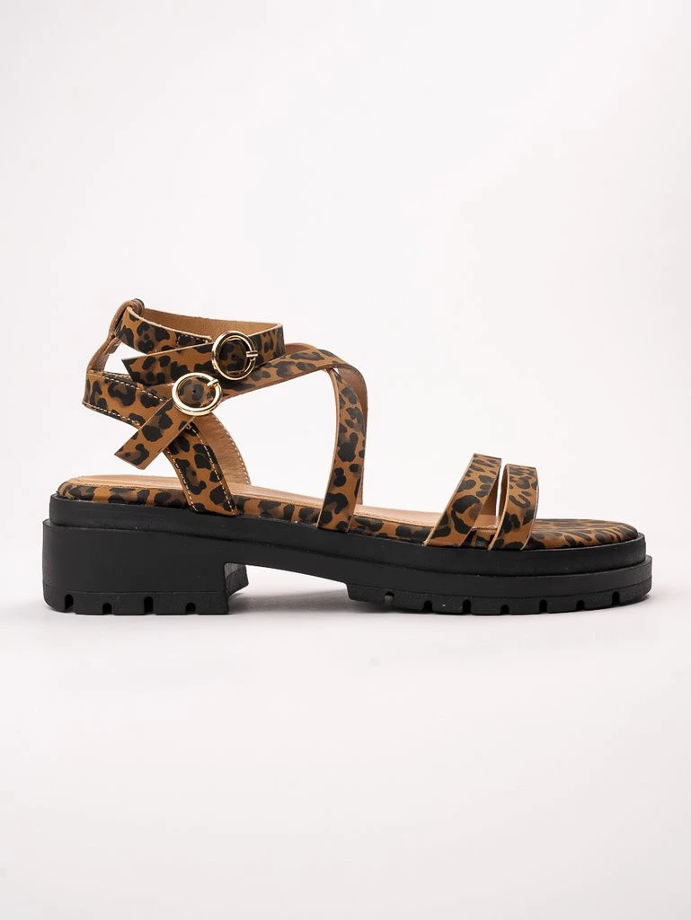 Sandały płaskie damskie z paskami w kolorze Leopard