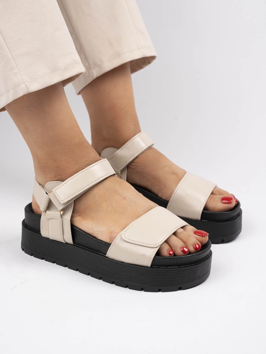 Odkryj wygodę i styl dzięki tym sandałom płaskim z rzepem, które są idealnym wyborem na letnie dni. Wykonane z wysokiej jakości skóry, oferują miękki i trwały pasek, który delikatnie obejmuje stopę. Gruba podeszwa dodaje nie tylko nowoczesnego wyglądu, ale także zapewnia doskonałą amortyzację na każdym kroku. Zapięcie na rzep ułatwia dopasowanie butów do indywidualnych potrzeb, oferując jednocześnie szybkie zakładanie i zdejmowanie. Jasny, klasyczny kolor Beige sprawia, że sandały są uniwersalnym dodatkiem do wielu letnich stylizacji, nadając im elegancji i lekkości.