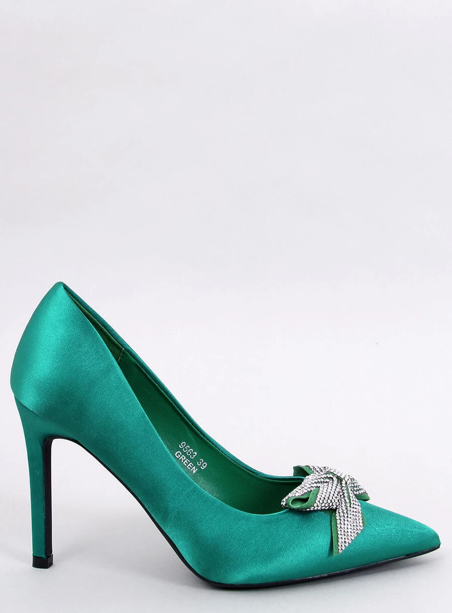 Satynowe czółenka damskie na szpilce. Kokarda z błyszczącymi cyrkoniami sprawi, że zakochacie się w nich od pierwszego wejrzenia : ) Obcas o wysokości 10 cm pięknie wysmukli Twoją sylwetkę, a satynowe wykończenie podkreśla ich wyjątkowy styl…. Idealny wybór na specjalne okazje – studniówkę, wesele czy bal. Materiał zewnętrzny – tkanina.