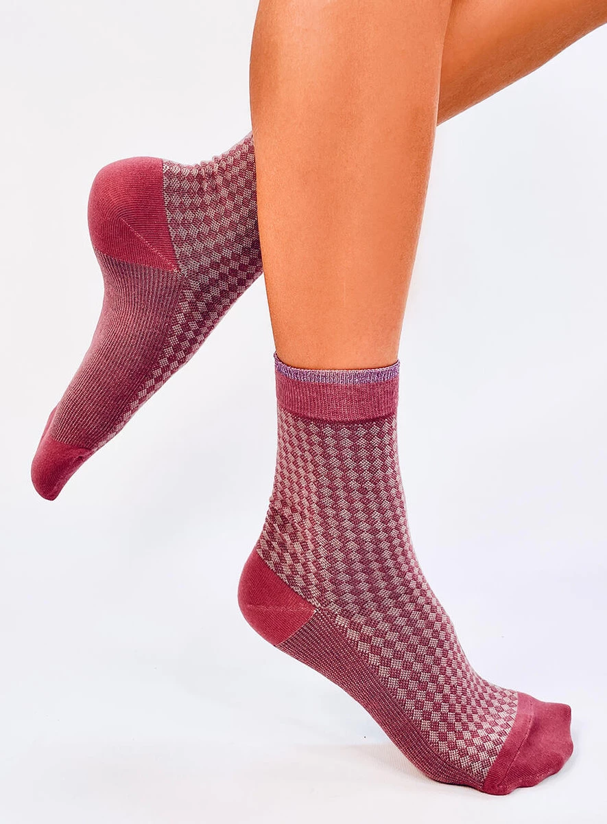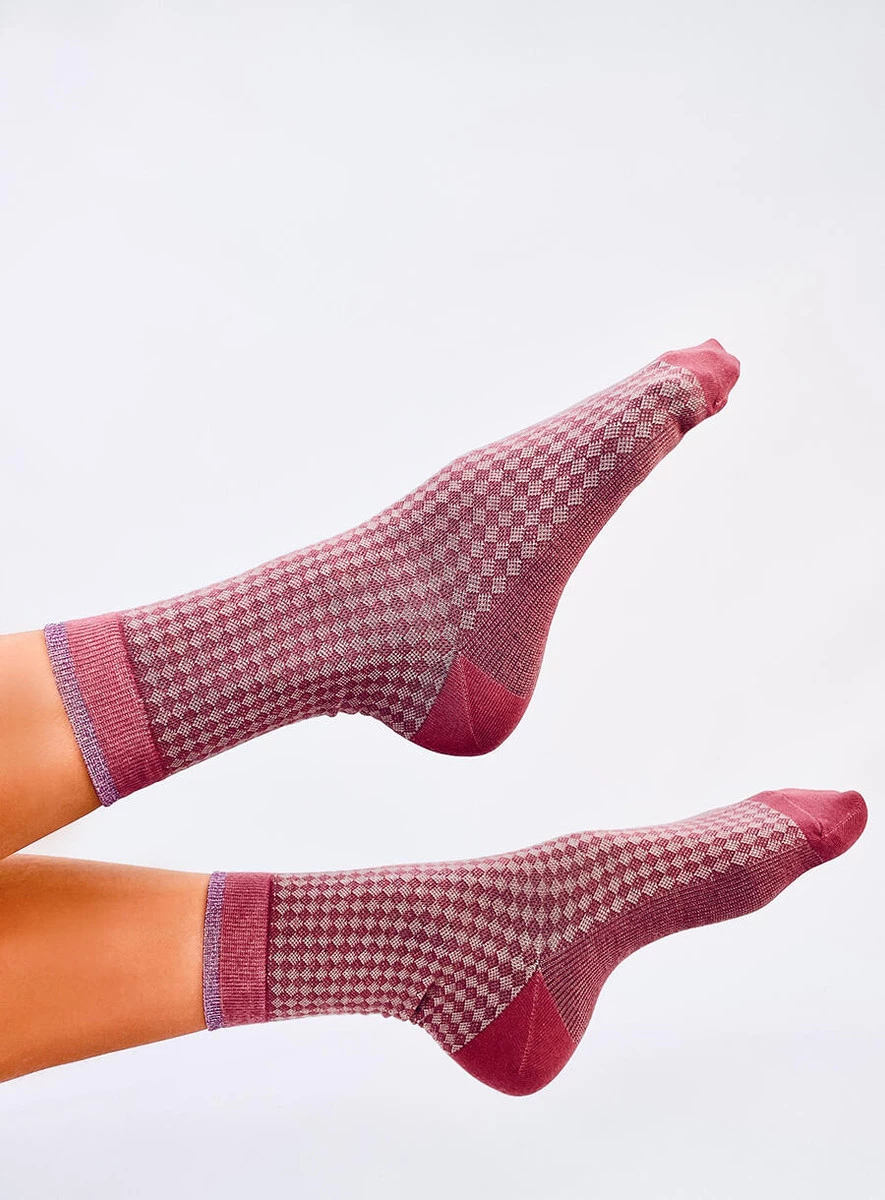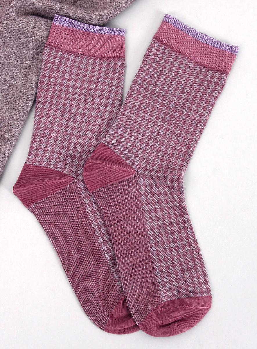 Długie skarpetki damskie. Mają niepowtarzalny wzór oraz metaliczne, błyszczące wykończenie – na pewno przyciągną spojrzenia : ) Idealnie sprawdzą się też na prezent…