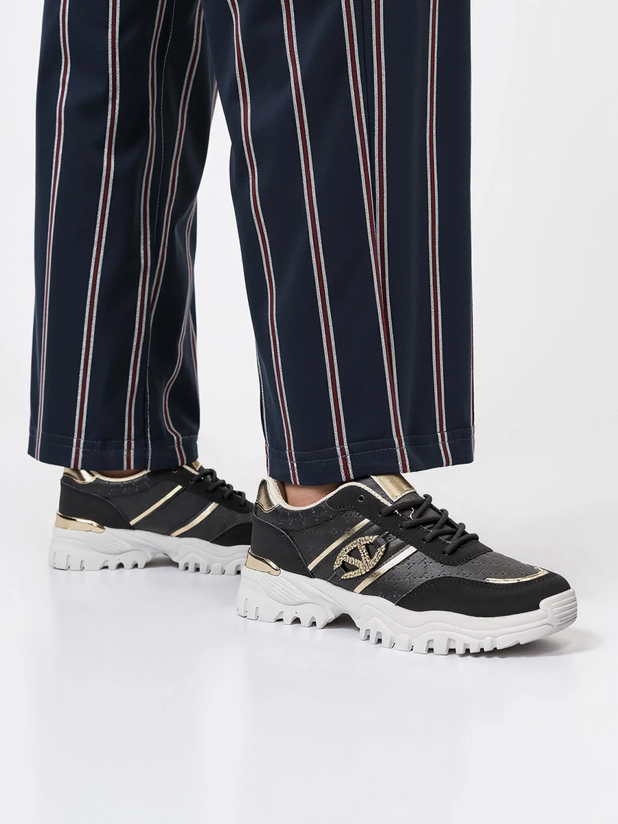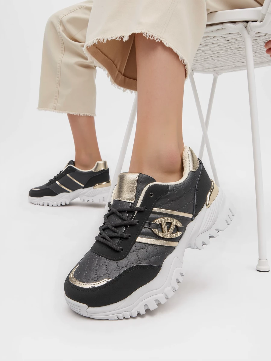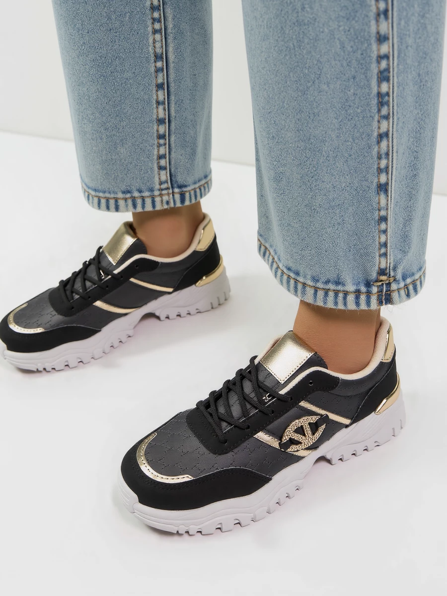 Sneakers Aurora Black to wyjątkowe obuwie, które łączy sportowy styl z elegancją dzięki złotym detalom. Idealne na co dzień, zapewniają komfort i nowoczesny wygląd. Czarne sneakersy o uniwersalnym designie pasują do wielu stylizacji, stanowiąc stylowy akcent w każdej garderobie.