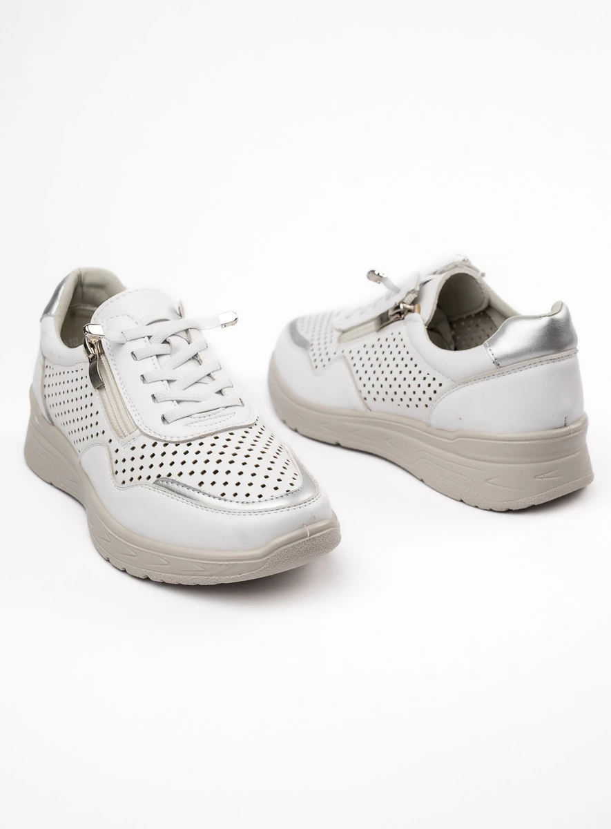 Odkryj białe sneakersy Aurora, które łączą styl i wygodę. Ich perforowany design zapewnia przewiewność, idealną na ciepłe dni. Doskonałe na co dzień, te buty dodadzą świeżości każdej stylizacji, łącząc funkcjonalność i modę.