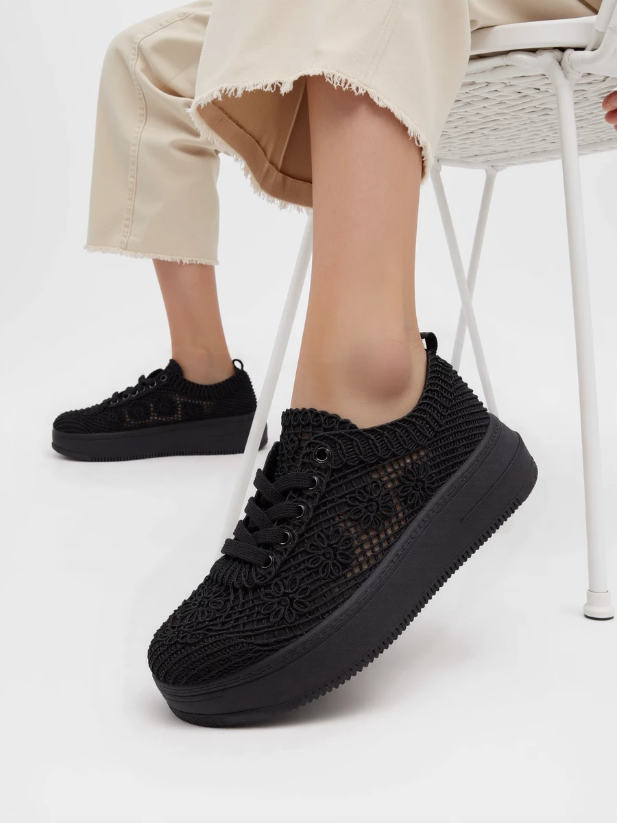 Sneakersy damskie w kolorze Black to połączenie stylu i komfortu. Wykonane z elastycznego materiału dzianinowego, zapewniają dopasowanie i wentylację, idealne na sezon wiosenno-letni. Platformowa podeszwa dodaje kilku centymetrów wzrostu, a jednocześnie gwarantuje stabilność i wygodę chodzenia. Klasyczny design zawiązywany na sznurowadła pozwala na indywidualne dopasowanie oraz dodaje sportowego charakteru. Idealne zarówno na codzienne spacery, jak i aktywne dni w ruchu. Uzupełnij swoją garderobę o te uniwersalne sneakersy, które łączą w sobie nowoczesny wygląd i praktyczność.
