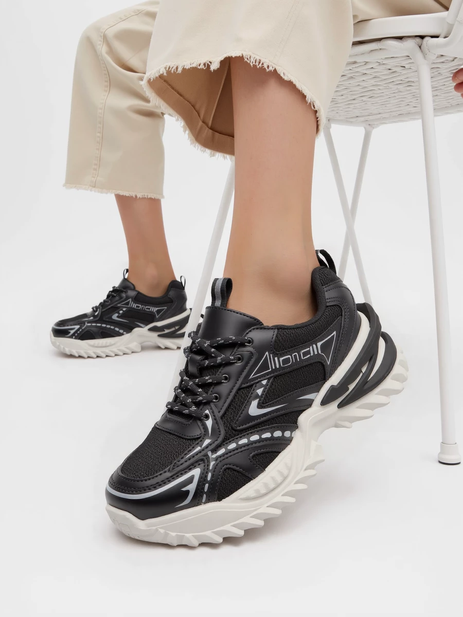 Te czarne sneakersy, zaprojektowane dla modnych i aktywnych osób, oferują komfort i styl na co dzień. Solidna podeszwa gwarantuje stabilność, a oryginalny design zwraca uwagę. Idealne na spacer, do pracy czy weekendowe wyjścia, te sneakersy łączą funkcjonalność z nowoczesnym stylem.