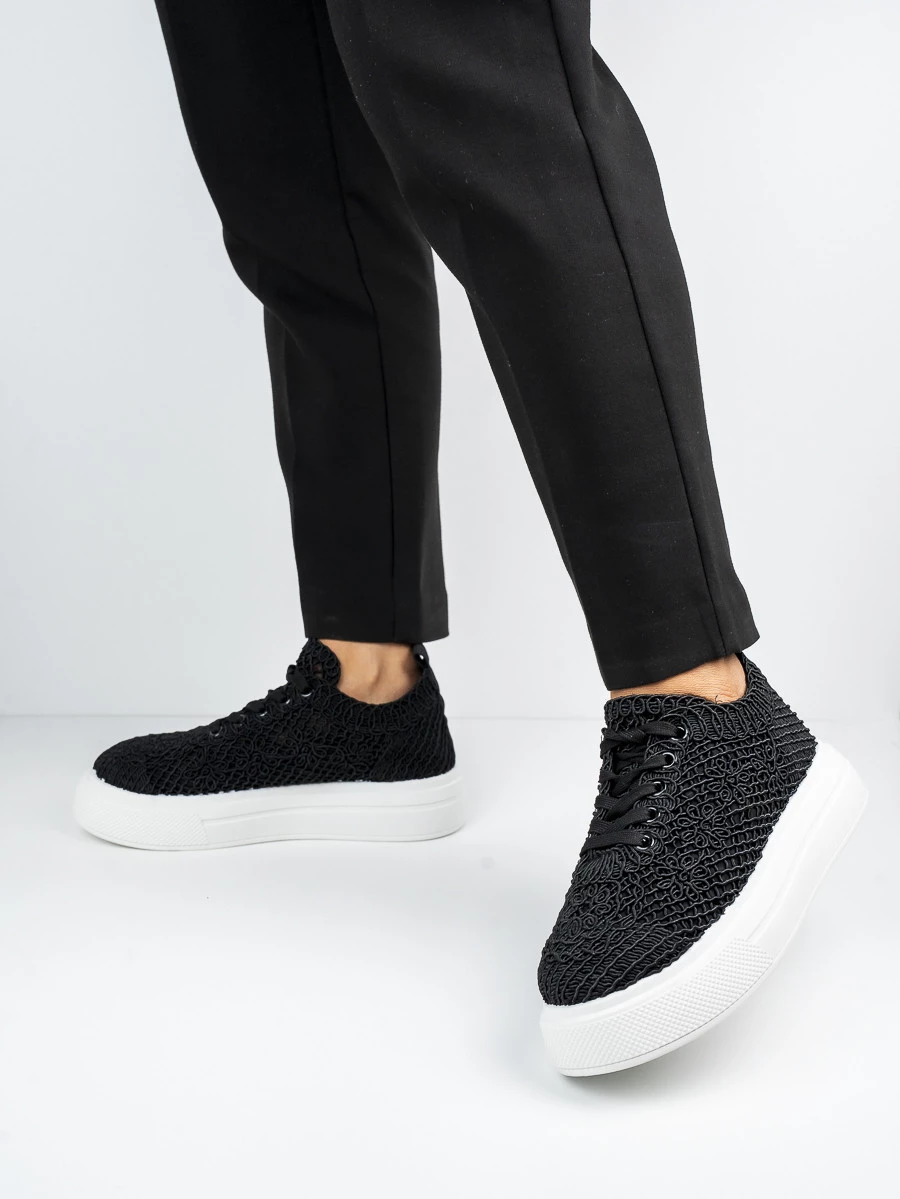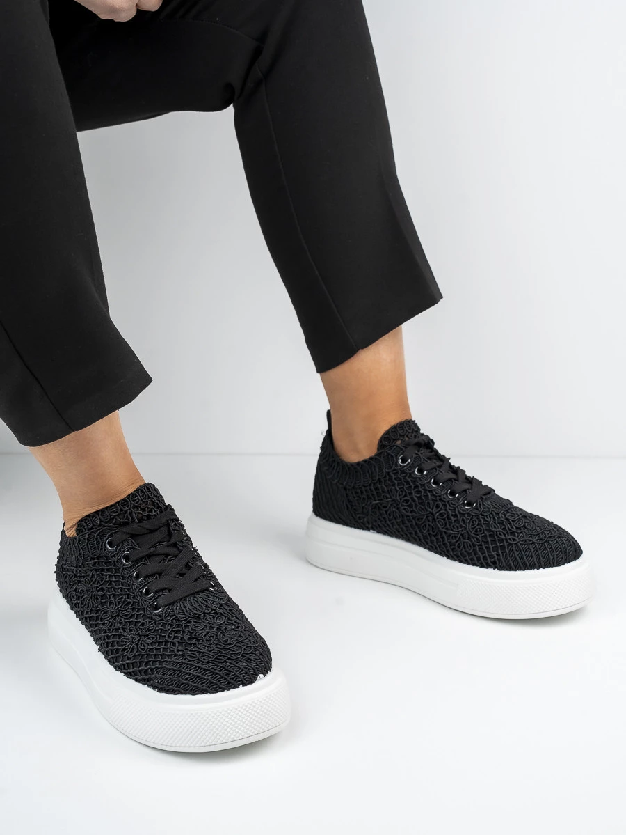 Sneakersy teksturowane damskie z koronką w kolorze Black